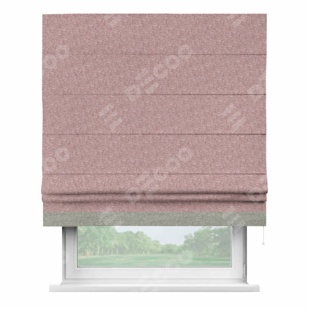 Римская штора производителя «Cortin», используется для проёма, пошита из ткани лён кашемир розовая пудра, артикул 21619. Отделка шторы кантом «Джестер», ткань для канта используется из льна разной расцветки на выбор. Имеет универсальный механизм и подходит для монтажа: на потолок, на стену и в нишу.