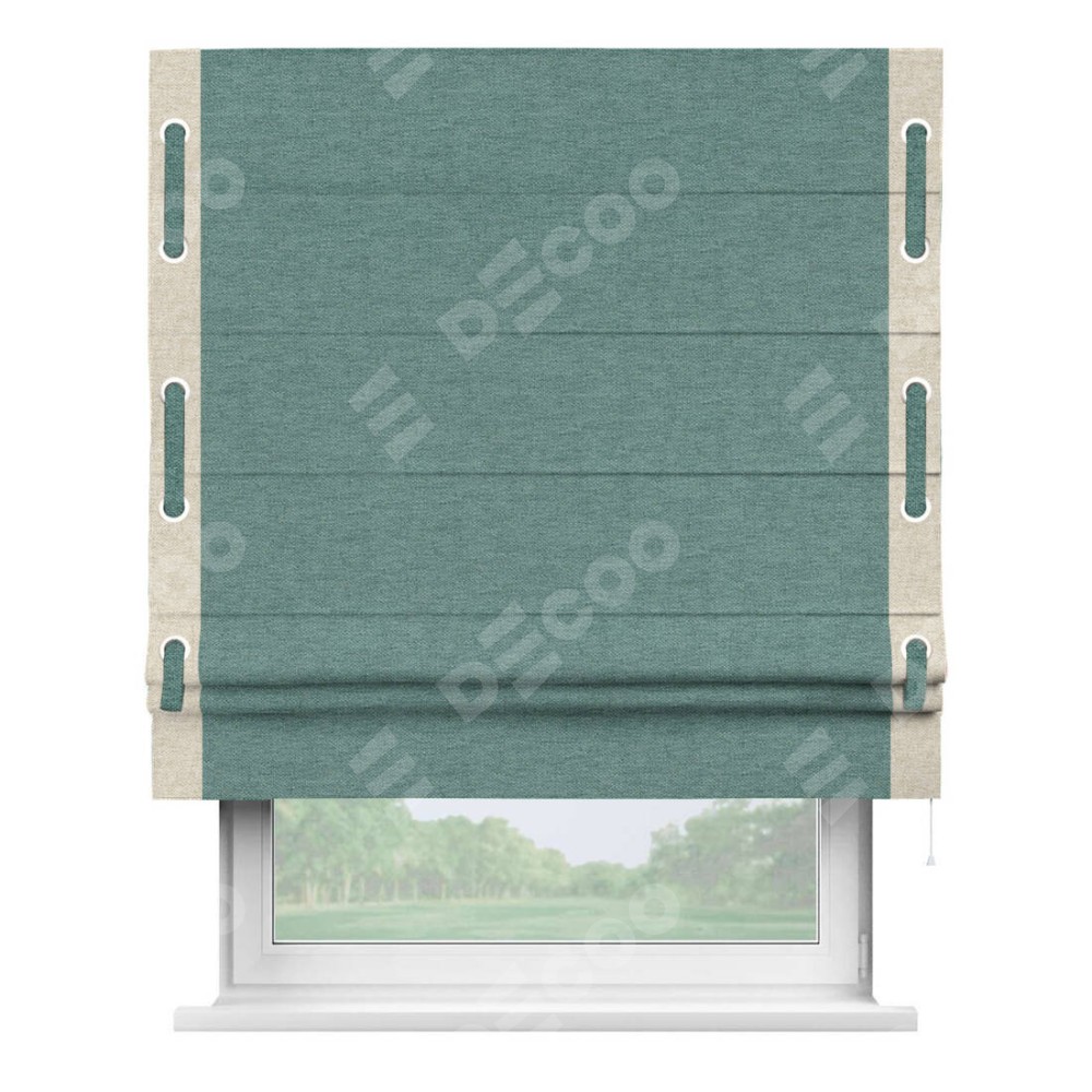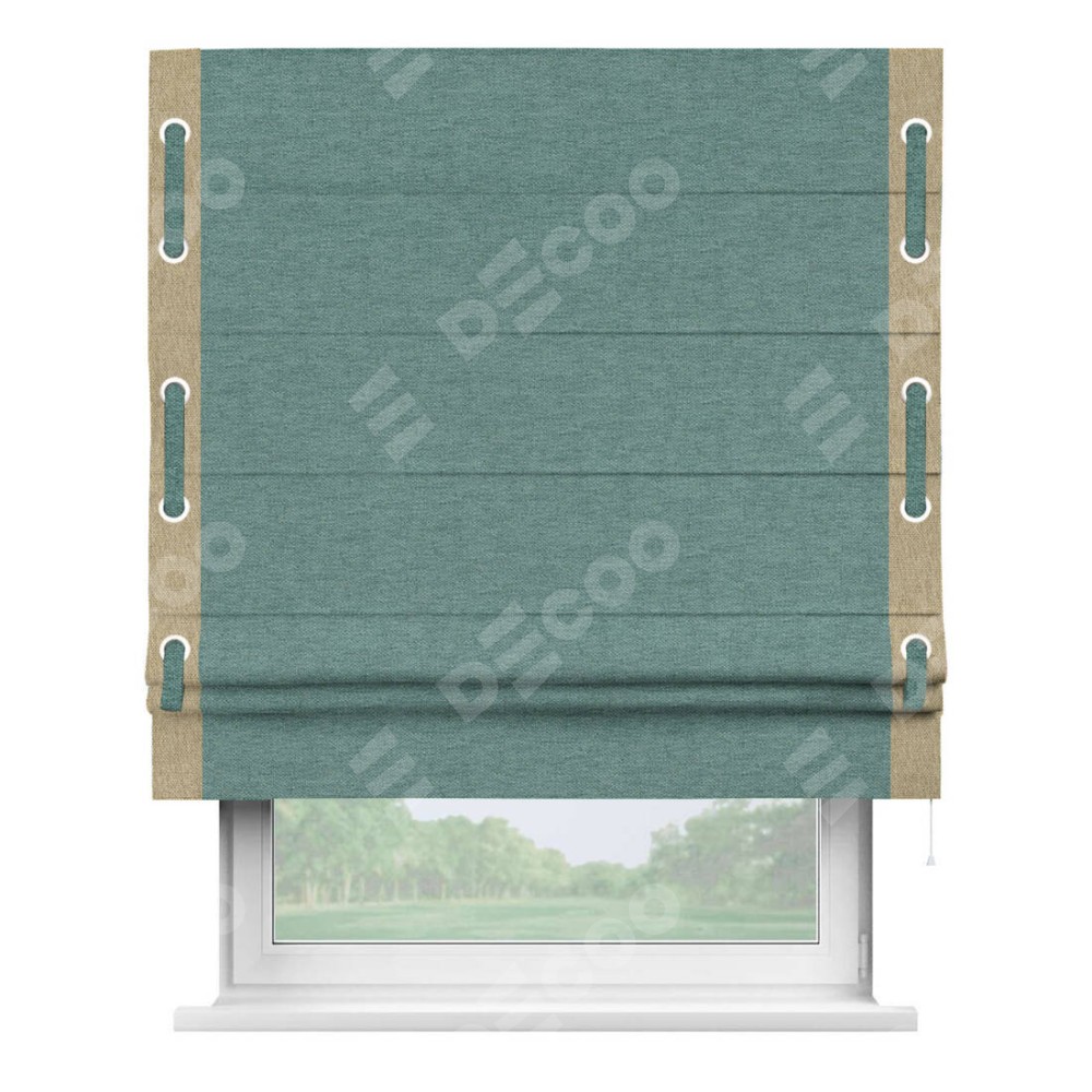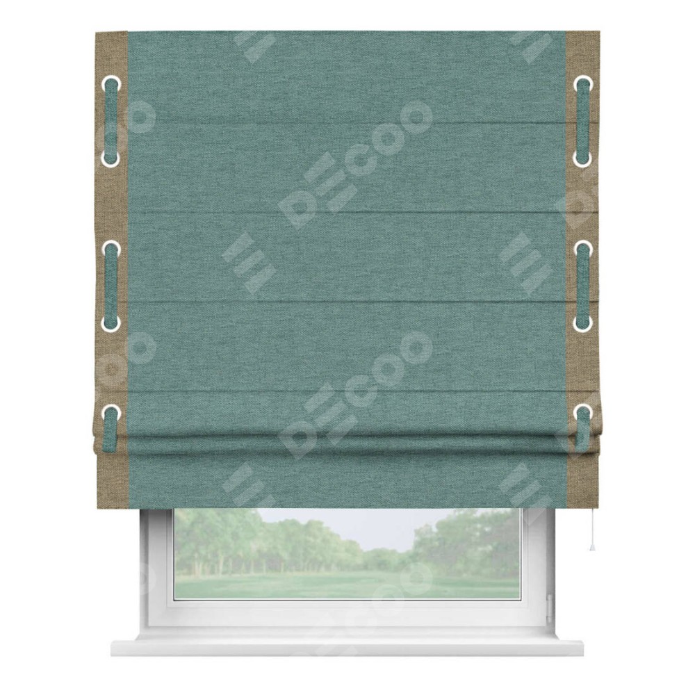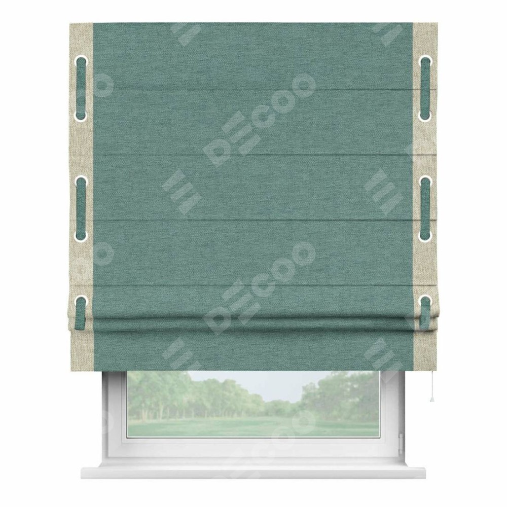 Римская штора «Кортин» с кантом Стрим Дуо (люверсы с пояском), для проема, ткань стиф димаут бирюзовый