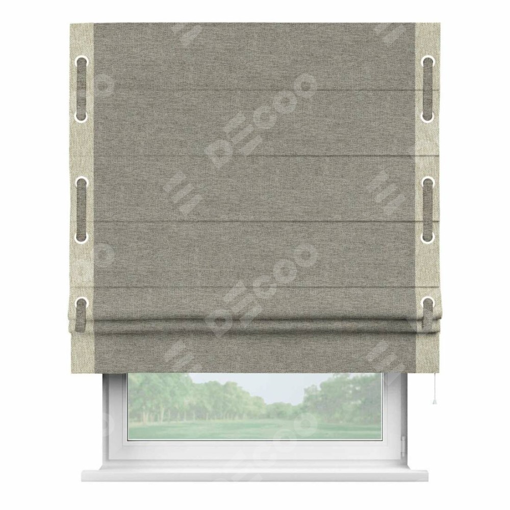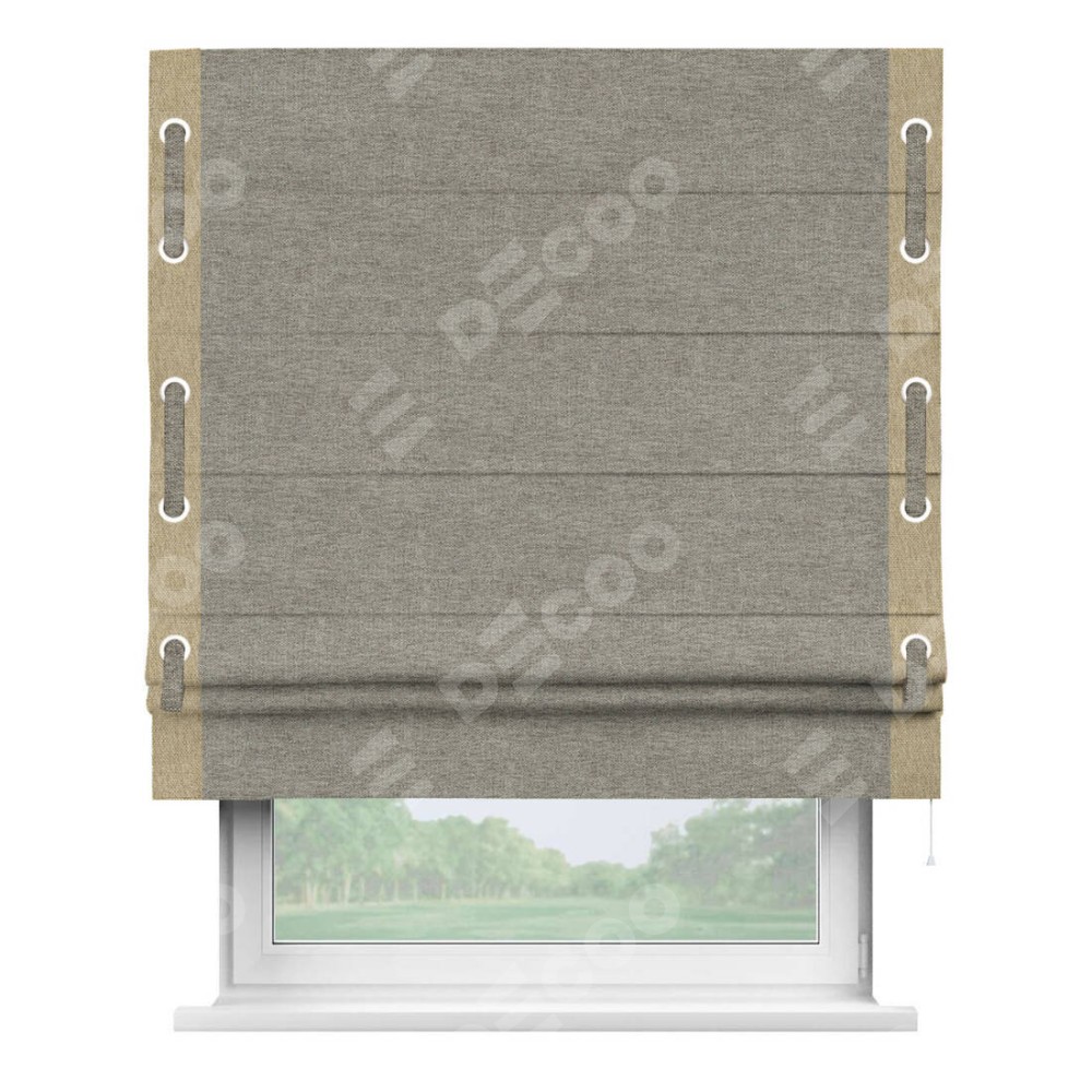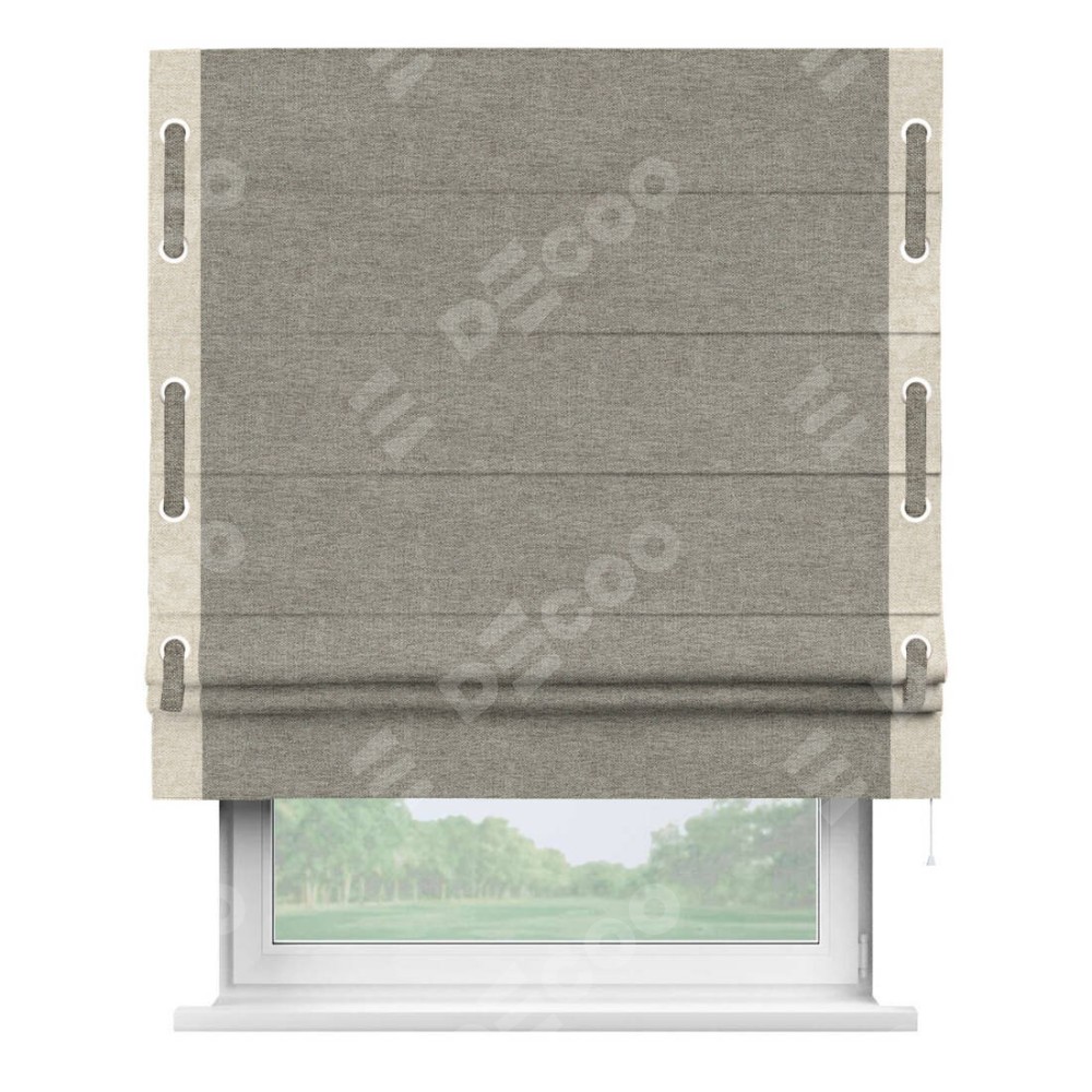 Римская штора «Кортин» с кантом Стрим Дуо (люверсы с пояском), для проема, ткань стиф димаут серо-коричневый