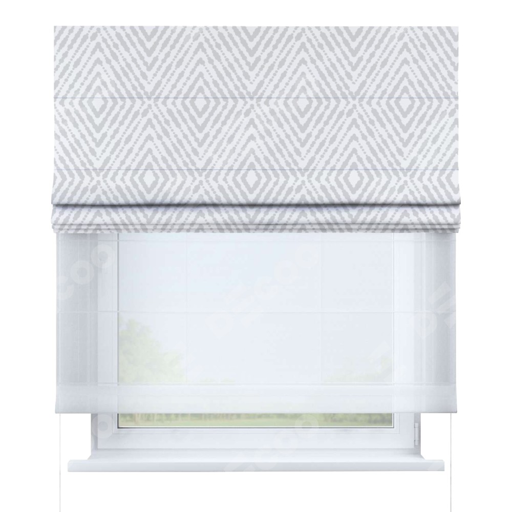 Римская штора день-ночь производителя «Cortin», используется для проёма, пошита из двух полотен, с лицевой блэкаут с нанесением сублимационной печати «Притяжение», вторая ткань тюль (по стандарту комплектуется тюль белого цвета артикул V-01). Имеет универсальный механизм и подходит для монтажа: на потолок, на стену и в нишу.