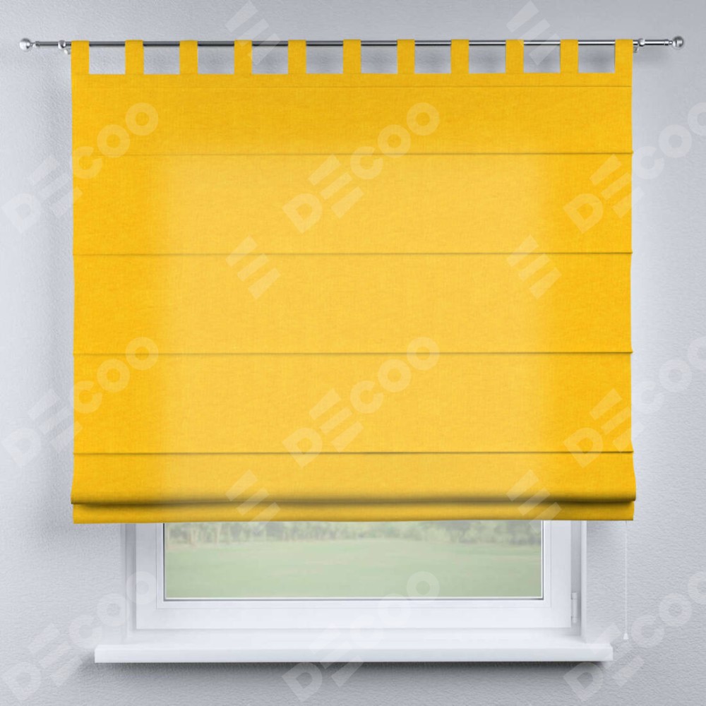 Римская штора производителя «Cortin», используется для проёма, пошита из ткани канвас желтый, артикул ткани v-344. Данная модель пошита на петлях, комплектуется на выбор круглым карнизом и подходит для монтажа на стену. Римская штора на петлях имеет простую систему регулировки высоты, отличительным преимуществом данной модели является простой способ монтажа. Достаточно повесить ее на трубу и штора готова!