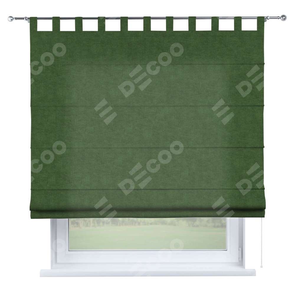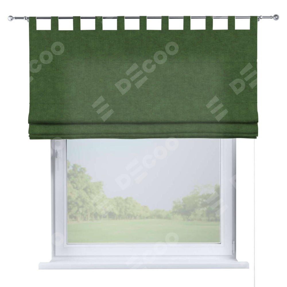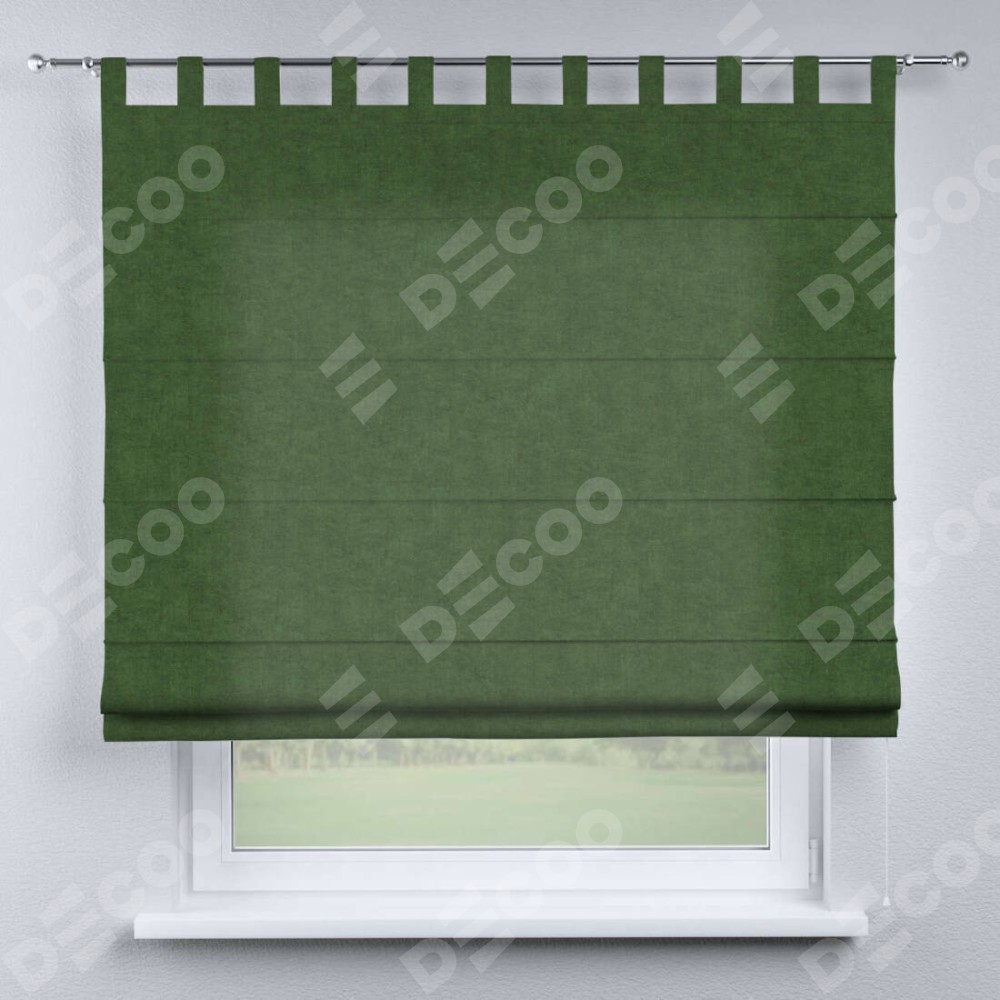 Римская штора производителя «Cortin», используется для проёма, пошита из ткани канвас зелёный, артикул ткани v-16. Данная модель пошита на петлях, комплектуется на выбор круглым карнизом и подходит для монтажа на стену. Римская штора на петлях имеет простую систему регулировки высоты, отличительным преимуществом данной модели является простой способ монтажа. Достаточно повесить ее на трубу и штора готова!