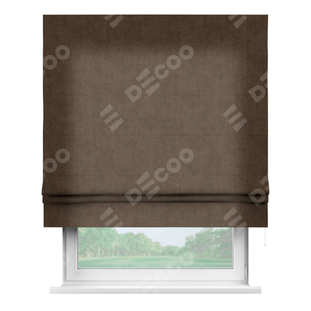 Римская штора производителя «Cortin», используется для проёма, пошита из ткани канвас коричневый, артикул ткани v-29. Имеет универсальный механизм и подходит для монтажа: на потолок, на стену и в нишу.