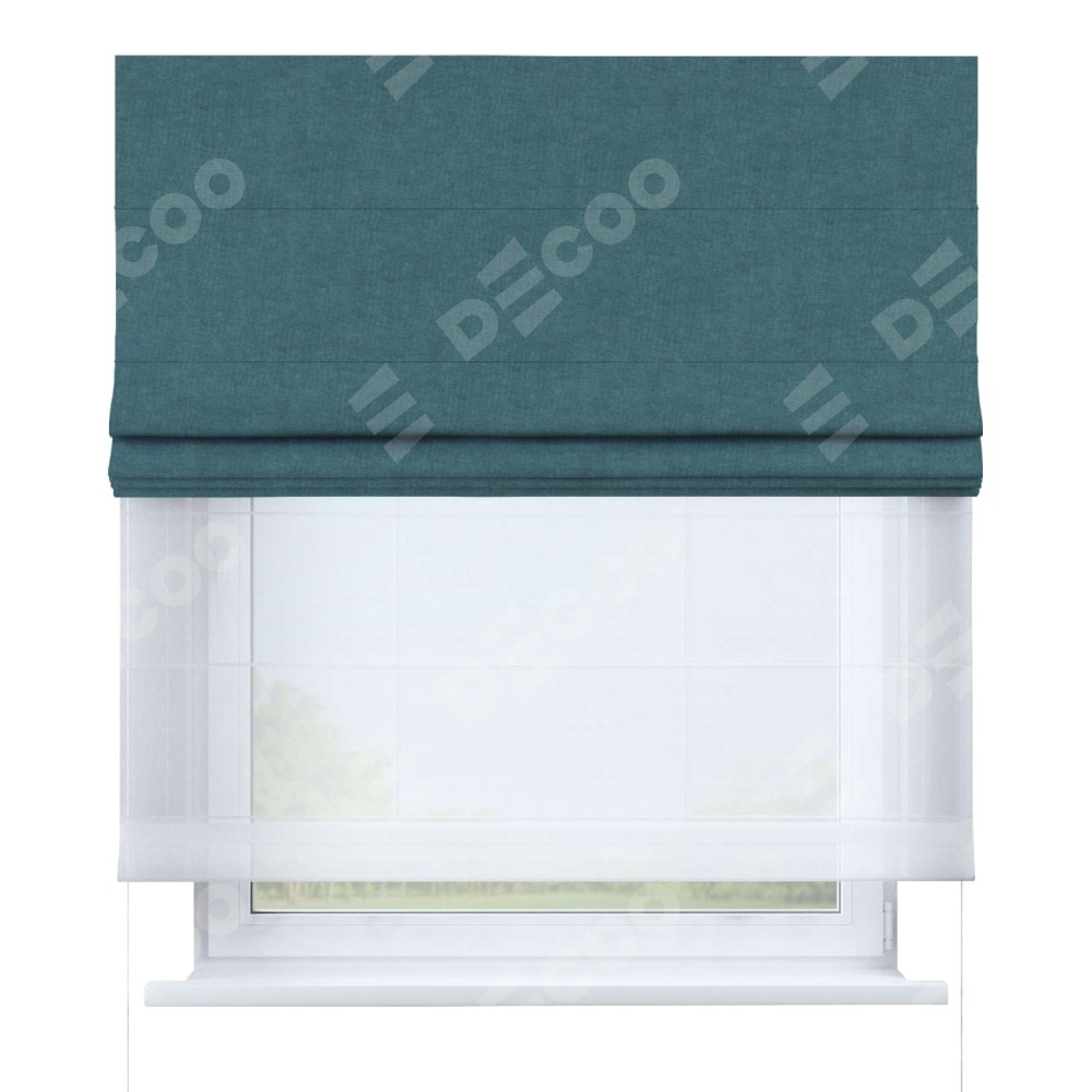 Римская штора день-ночь производителя «Cortin», используется для проёма, пошита из двух полотен, с лицевой стороны канвас ментоловый артикул v-114, вторая ткань тюль (по стандарту комплектуется тюль белого цвета артикул V-01). Имеет универсальный механизм и подходит для монтажа: на потолок, на стену и в нишу.