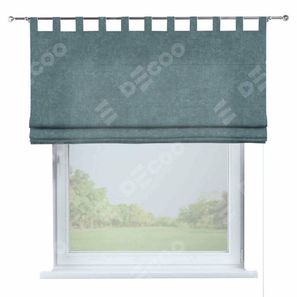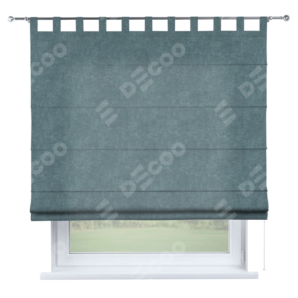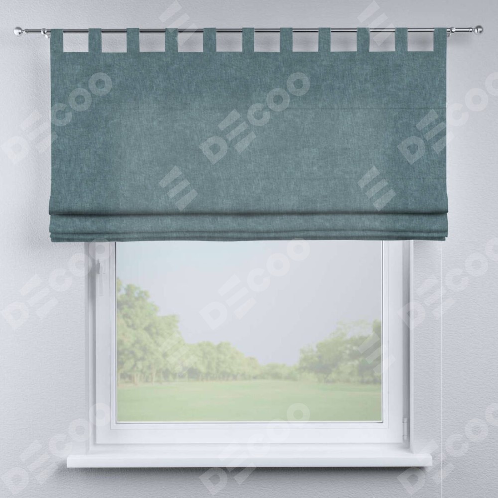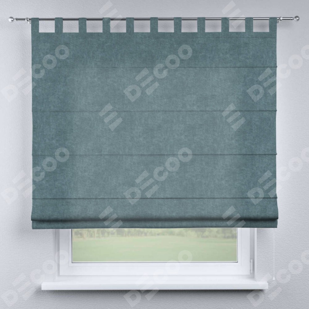 Римская штора производителя «Cortin», используется для проёма, пошита из ткани канвас серо-голубой, артикул ткани v-330. Данная модель пошита на петлях, комплектуется на выбор круглым карнизом и подходит для монтажа на стену. Римская штора на петлях имеет простую систему регулировки высоты, отличительным преимуществом данной модели является простой способ монтажа. Достаточно повесить ее на трубу и штора готова!