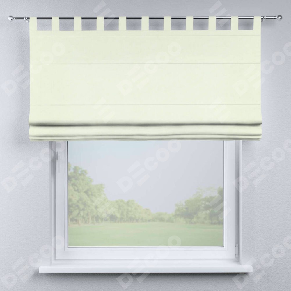 Римская штора производителя «Cortin», используется для проёма, пошита из ткани канвас сливочный, артикул ткани v-94. Данная модель пошита на петлях, комплектуется на выбор круглым карнизом и подходит для монтажа на стену. Римская штора на петлях имеет простую систему регулировки высоты, отличительным преимуществом данной модели является простой способ монтажа. Достаточно повесить ее на трубу и штора готова!
