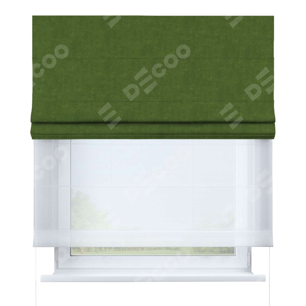 Римская штора день-ночь производителя «Cortin», используется для проёма, пошита из двух полотен, с лицевой стороны канвас трава артикул v-473, вторая ткань тюль (по стандарту комплектуется тюль белого цвета артикул V-01). Имеет универсальный механизм и подходит для монтажа: на потолок, на стену и в нишу.