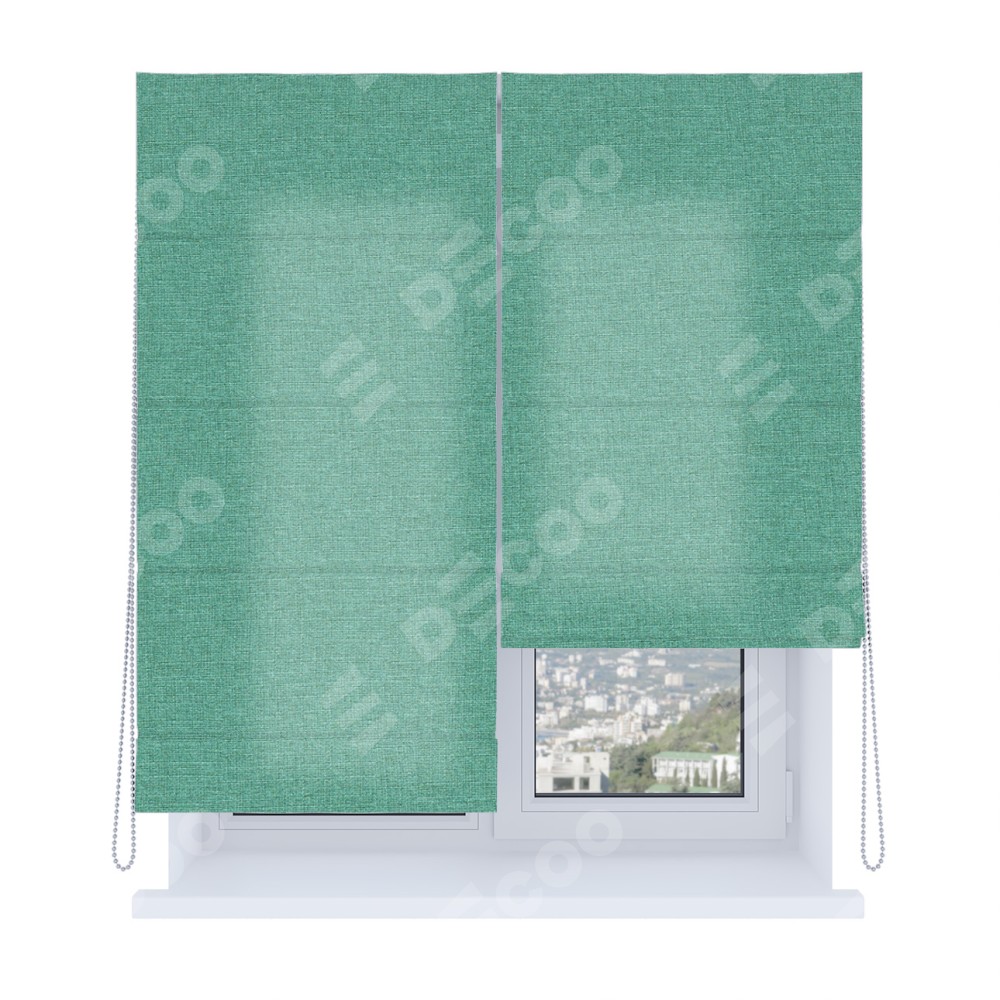 Римская штора производителя «Cortin», используется для проёма, пошита из ткани лён светло-бирюзовый, артикул ткани 53435. Имеет универсальный механизм и подходит для монтажа: на потолок, на стену и в нишу. Удобное управление каждой шторой отдельно.