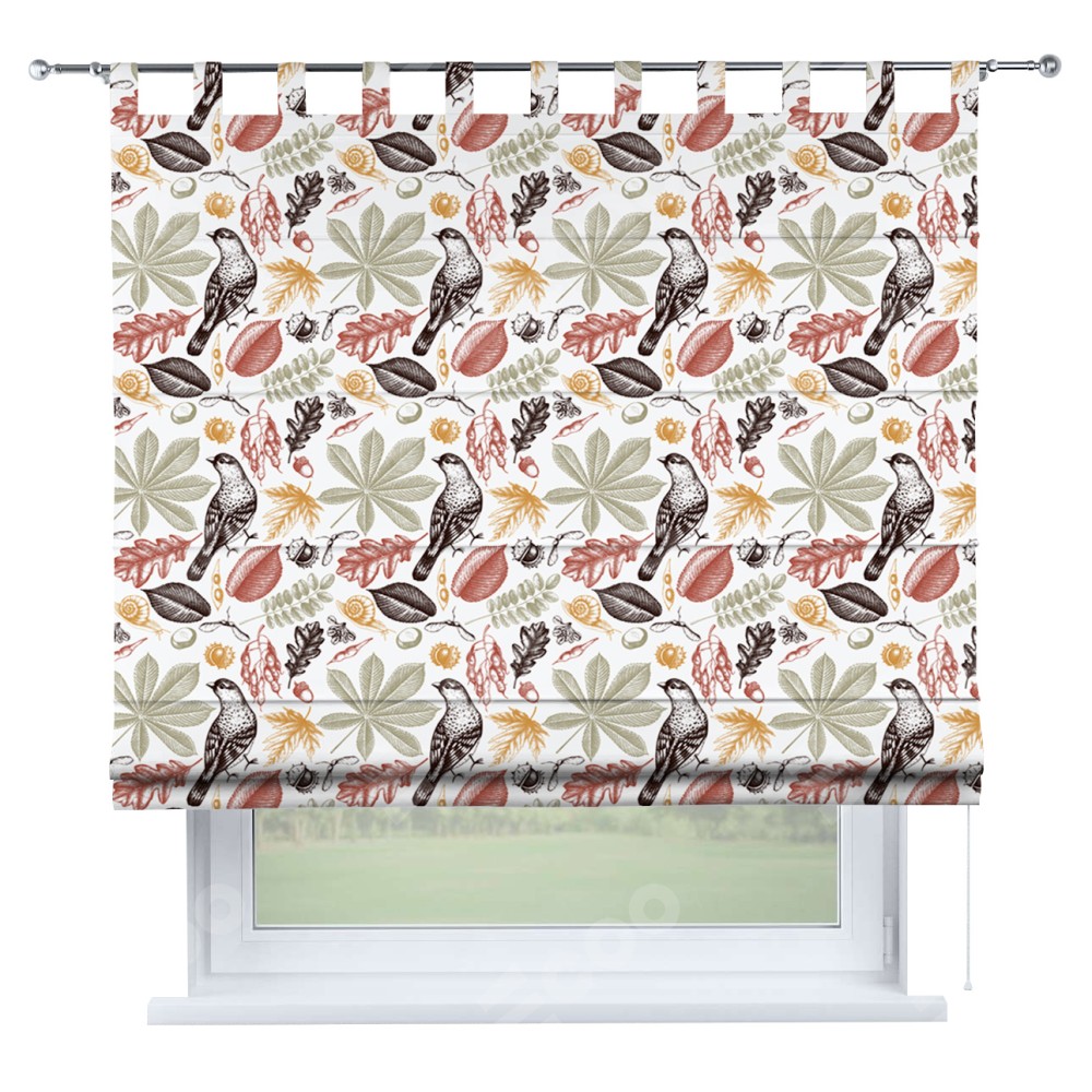 Римская штора производителя «Cortin», используется для проёма, пошита из ткани блэкаут с нанесением сублимационной печати «Краски осени». Данная модель пошита на петлях, комплектуется на выбор круглым карнизом и подходит для монтажа на стену. Римская штора на петлях имеет простую систему регулировки высоты, отличительным преимуществом данной модели является простой способ монтажа. Достаточно повесить ее на трубу и штора готова!
