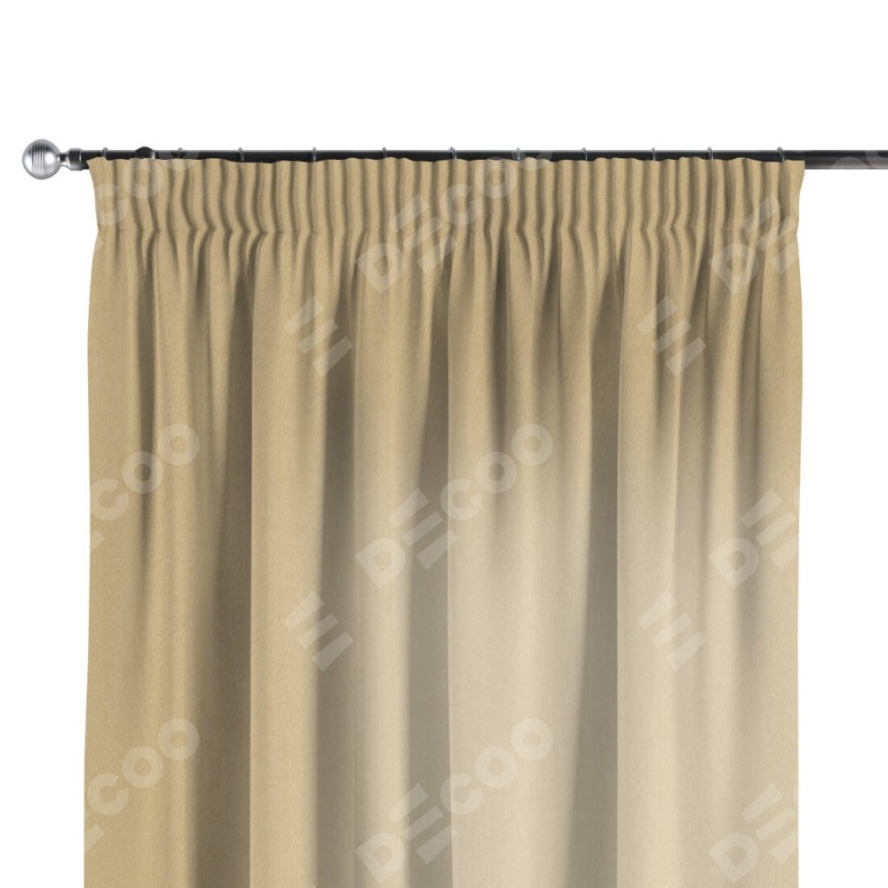 Комплект прямых штор, от производителя «Cortin», пошиты из ткани канвас бежевый, артикул ткани v-96. С изнаночной стороны в верхней части штор пристрачивается шторная лента с декоративными складками «Карандаш». Для создания элегантных складок прямые шторы шьются по стандарту с коэффициентом 1:2 (на 100 см. ширины проёма 200 см. ширины ткани).