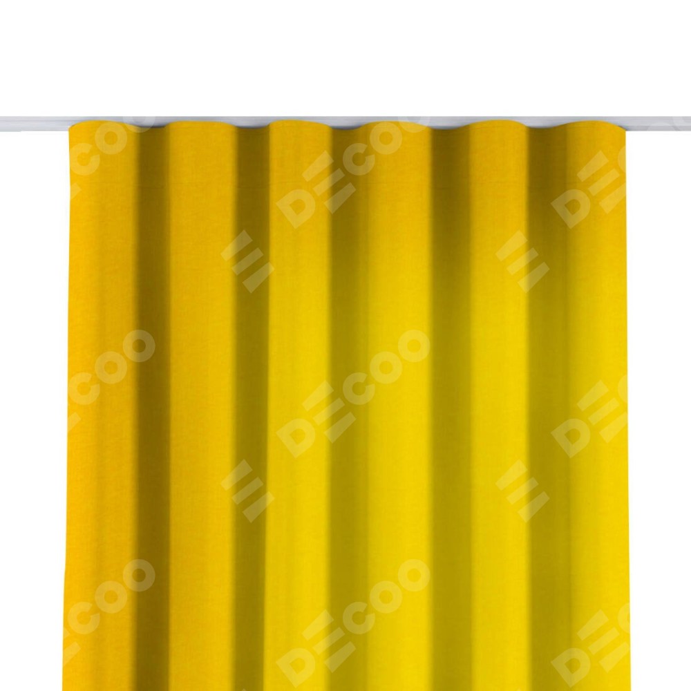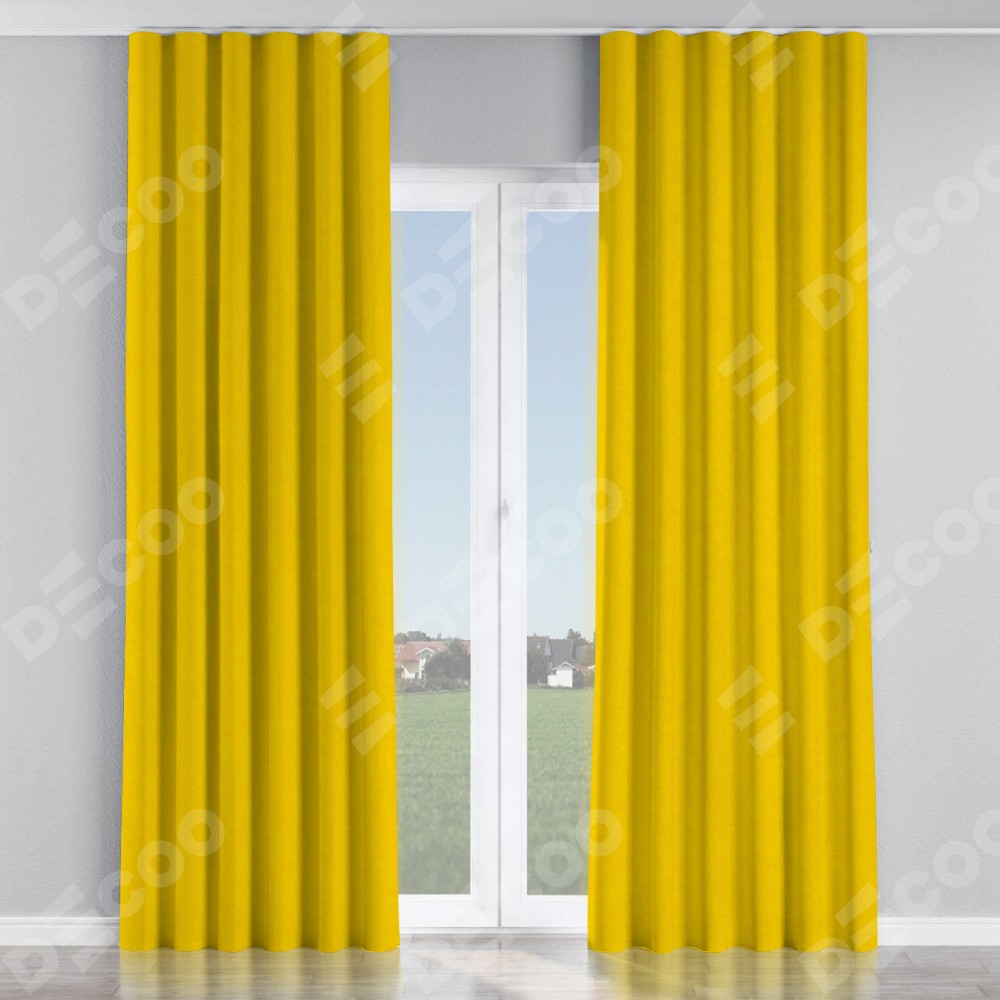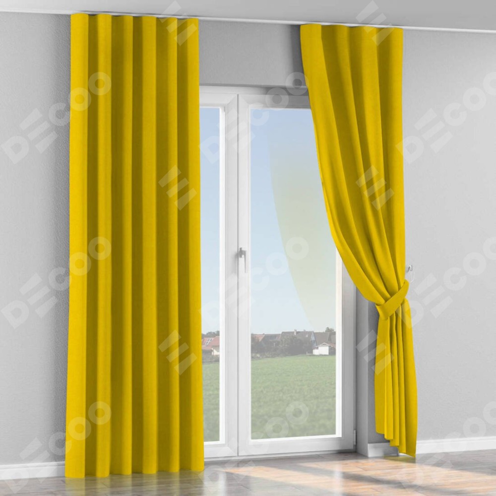 Комплект прямых штор, от производителя «Cortin», пошиты из ткани канвас желтый, артикул ткани v-344. С изнаночной стороны в верхней части штор пристрачивается шторная лента с декоративными складками «Волна». Для создания элегантных складок прямые шторы шьются по стандарту с коэффициентом 1:2 (на 100 см. ширины проёма 200 см. ширины ткани).