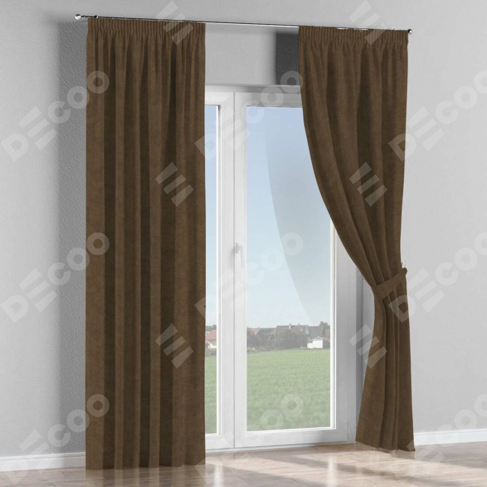 Комплект штор канвас коричневый, на тесьме «Карандаш»