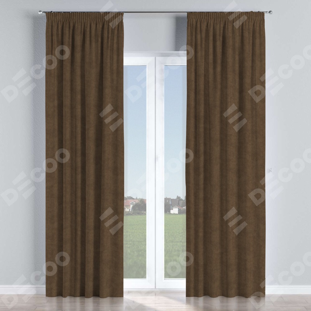 Комплект прямых штор, от производителя «Cortin», пошиты из ткани канвас коричневый, артикул ткани v-29. С изнаночной стороны в верхней части штор пристрачивается шторная лента с декоративными складками «Карандаш». Для создания элегантных складок прямые шторы шьются по стандарту с коэффициентом 1:2 (на 100 см. ширины проёма 200 см. ширины ткани).