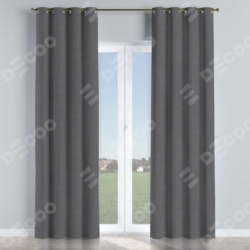 Комплект прямых штор, от производителя «Cortin», пошиты из ткани канвас мокрый асфальт, артикул ткани v-1083. Данная модель пошита на люверсах, комплектуется на выбор круглым карнизом и подходит для монтажа на стену или потолок. Прямые шторы на люверсах шьются по стандарту с коэффициентом 1/2 (на 100 см. ширины проёма 200 см. ширины ткани), отличительным преимуществом данной модели является простой способ монтажа. Достаточно повесить ее на трубу и штора готова!