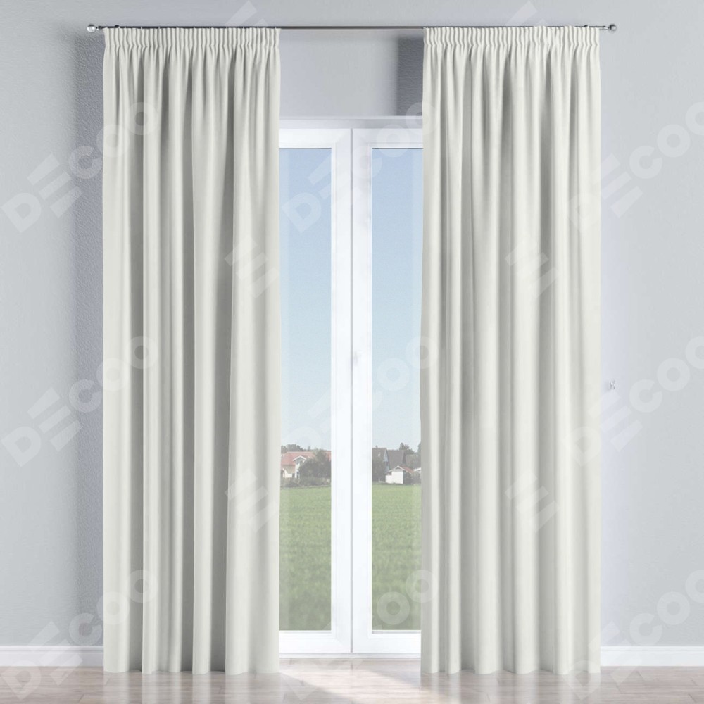 Комплект прямых штор, от производителя «Cortin», пошиты из ткани канвас молочный, артикул ткани v-93. С изнаночной стороны в верхней части штор пристрачивается шторная лента с декоративными складками «Карандаш». Для создания элегантных складок прямые шторы шьются по стандарту с коэффициентом 1:2 (на 100 см. ширины проёма 200 см. ширины ткани).