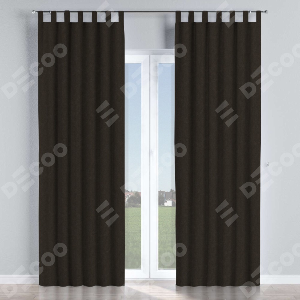 Комплект прямых штор, от производителя «Cortin», пошиты из ткани канвас тёмно-коричневый, артикул ткани v-13. Данная модель пошита на петлях, комплектуется на выбор круглым карнизом и подходит для монтажа на стену или потолок. Прямые шторы на петлях шьются по стандарту с коэффициентом 1/2 (на 100 см. ширины проёма 200 см. ширины ткани), отличительным преимуществом данной модели является простой способ монтажа. Достаточно повесить ее на трубу и штора готова!