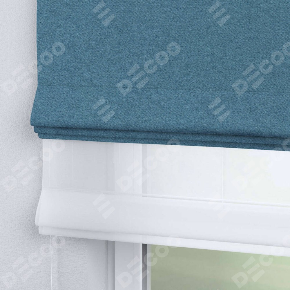 Римская штора день-ночь производителя «Cortin», используется для проёма, пошита из двух полотен, с лицевой стороны твид блэкаут светло-синий артикул 90935, вторая ткань тюль (по стандарту комплектуется тюль белого цвета артикул V-01). Имеет универсальный механизм и подходит для монтажа: на потолок, на стену и в нишу.