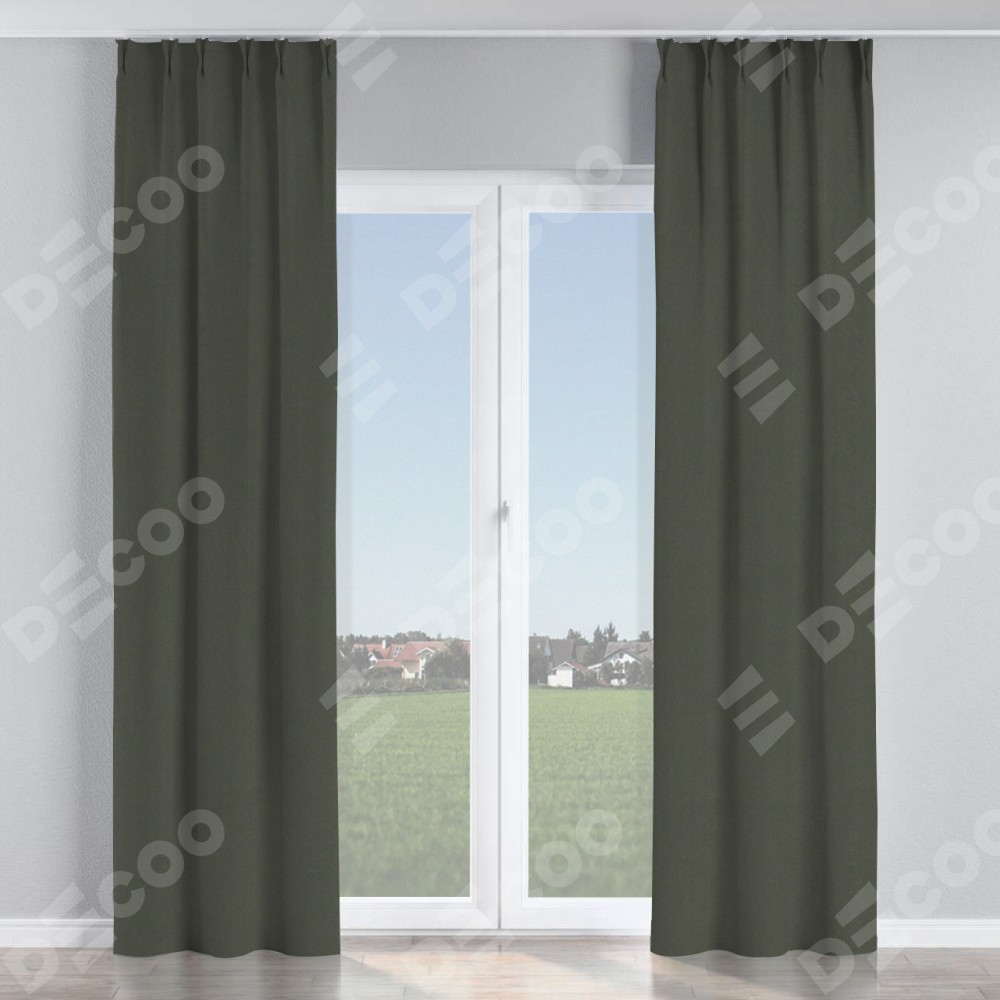 Комплект прямых штор, от производителя «Cortin», пошиты из ткани блэкаут однотонный дымчато-серый, артикул ткани 91571−1. С изнаночной стороны в верхней части штор пристрачивается шторная лента с декоративными складками «Кустик». Для создания элегантных складок прямые шторы шьются по стандарту с коэффициентом 1:2 (на 100 см. ширины проёма 200 см. ширины ткани).
