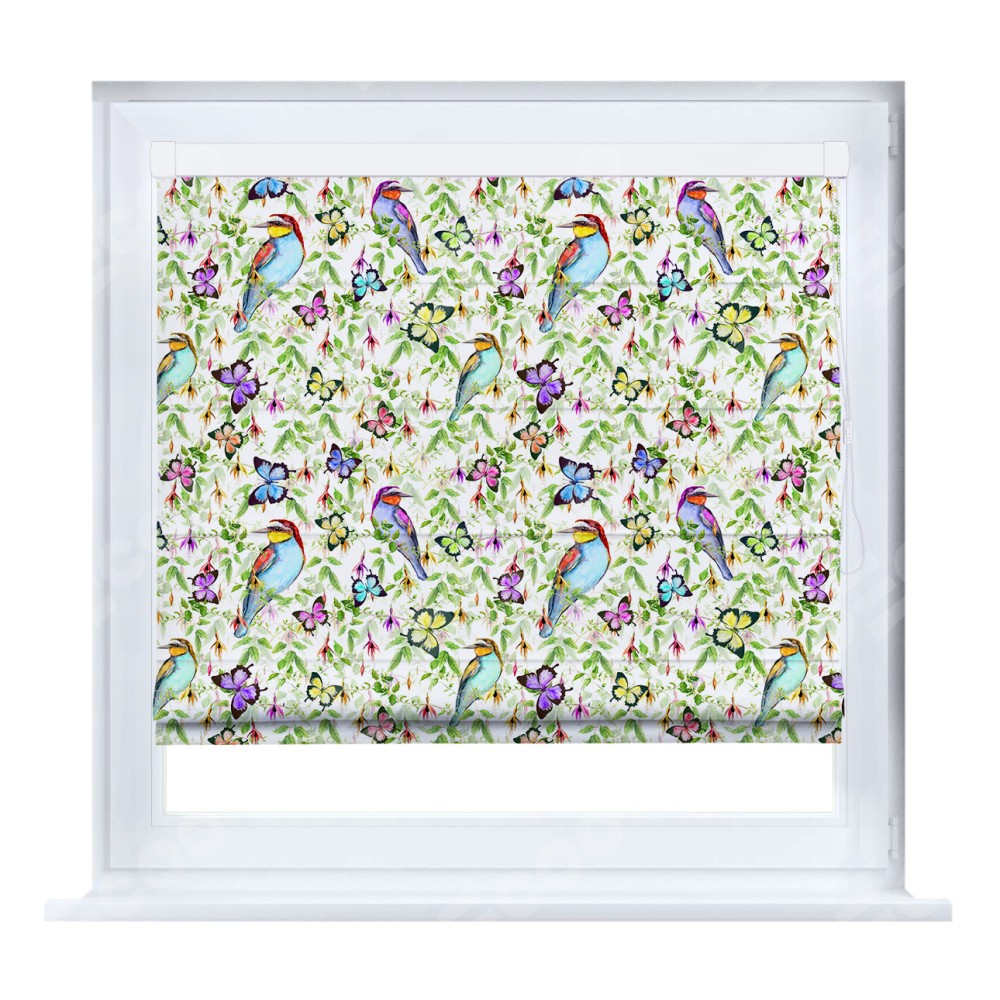 Римская штора «Кортин» кассетная «Тропические птицы»