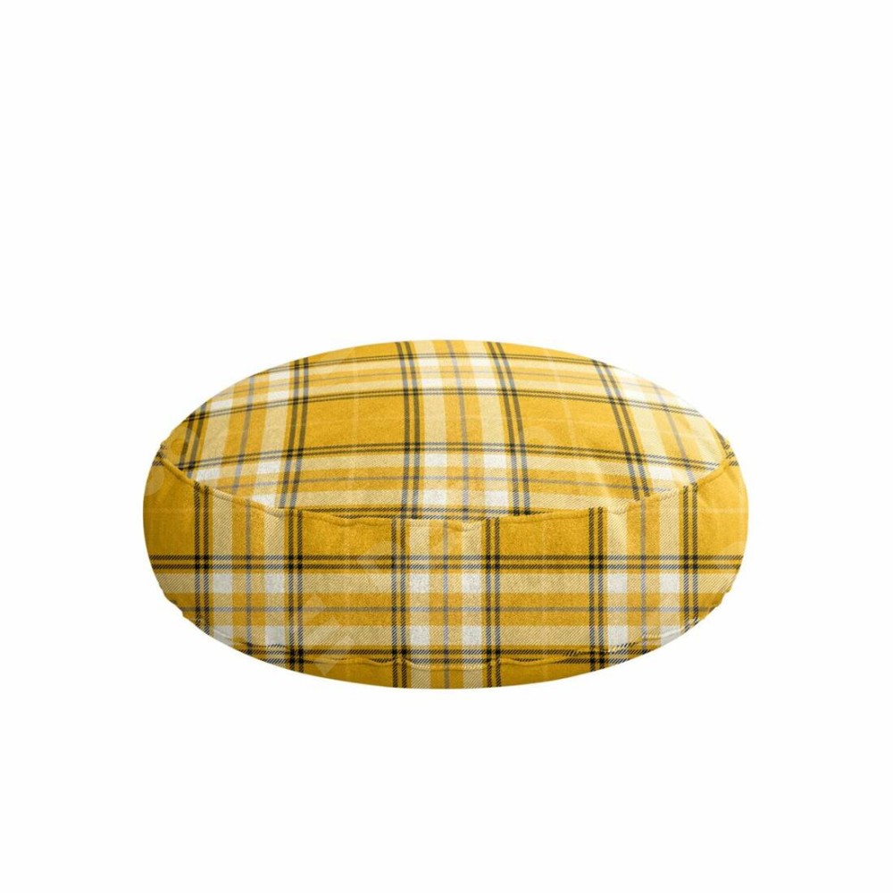 Подушка круглая Cortin «Желто-горчичная клетка»