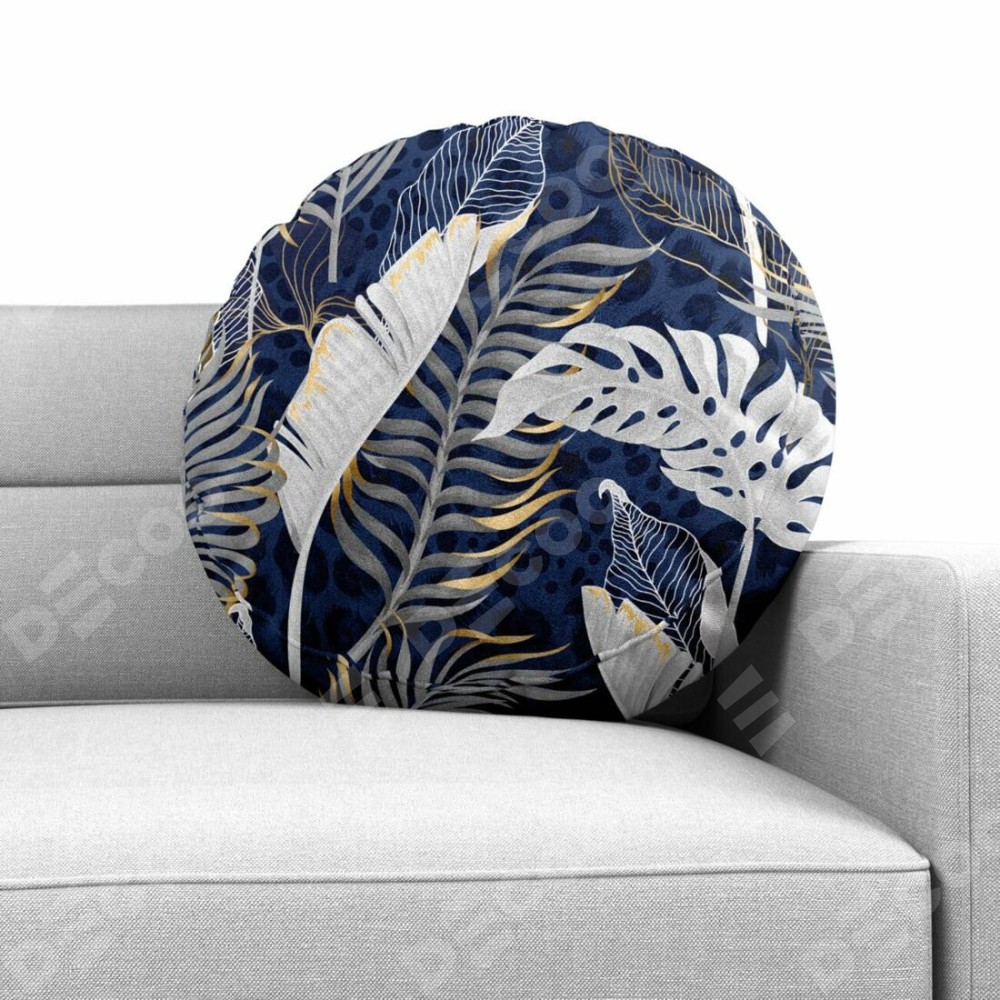 Подушка круглая Cortin «Сине-золотые джунгли»