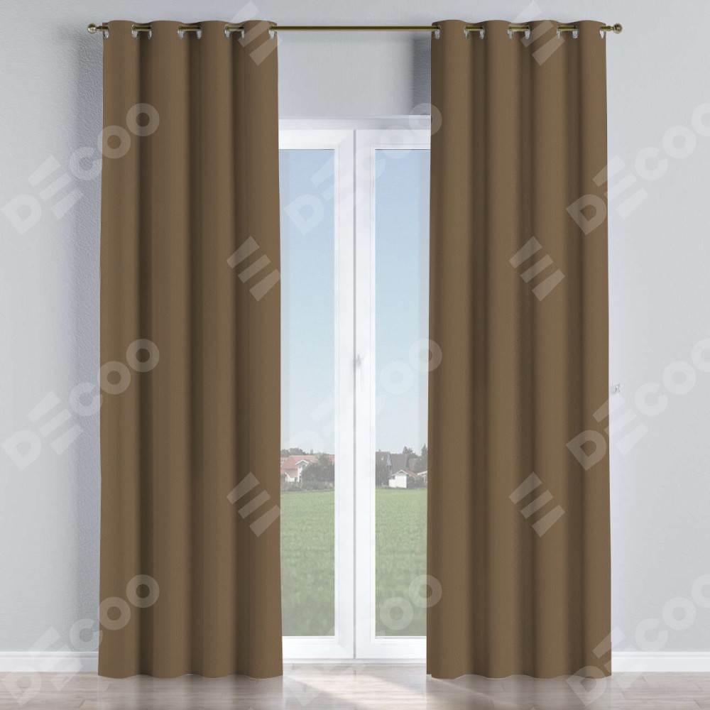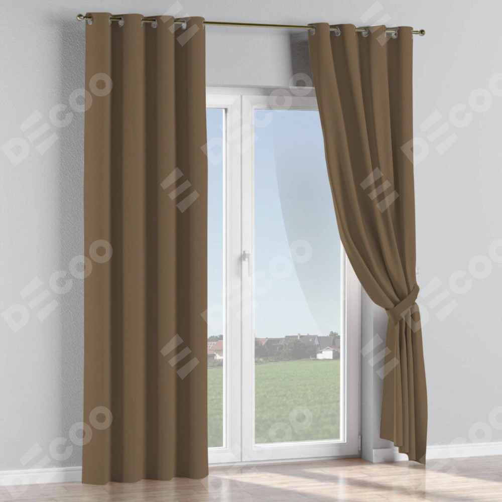 Комплект прямых штор, от производителя «Cortin», пошиты из ткани блэкаут однотонный коричневый, артикул ткани 91334. Данная модель пошита на люверсах, комплектуется на выбор круглым карнизом и подходит для монтажа на стену или потолок. Прямые шторы на люверсах шьются по стандарту с коэффициентом 1/2 (на 100 см. ширины проёма 200 см. ширины ткани), отличительным преимуществом данной модели является простой способ монтажа. Достаточно повесить ее на трубу и штора готова!