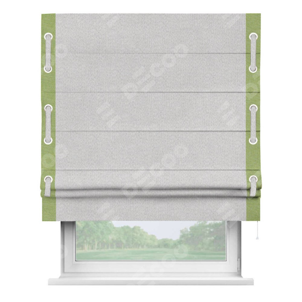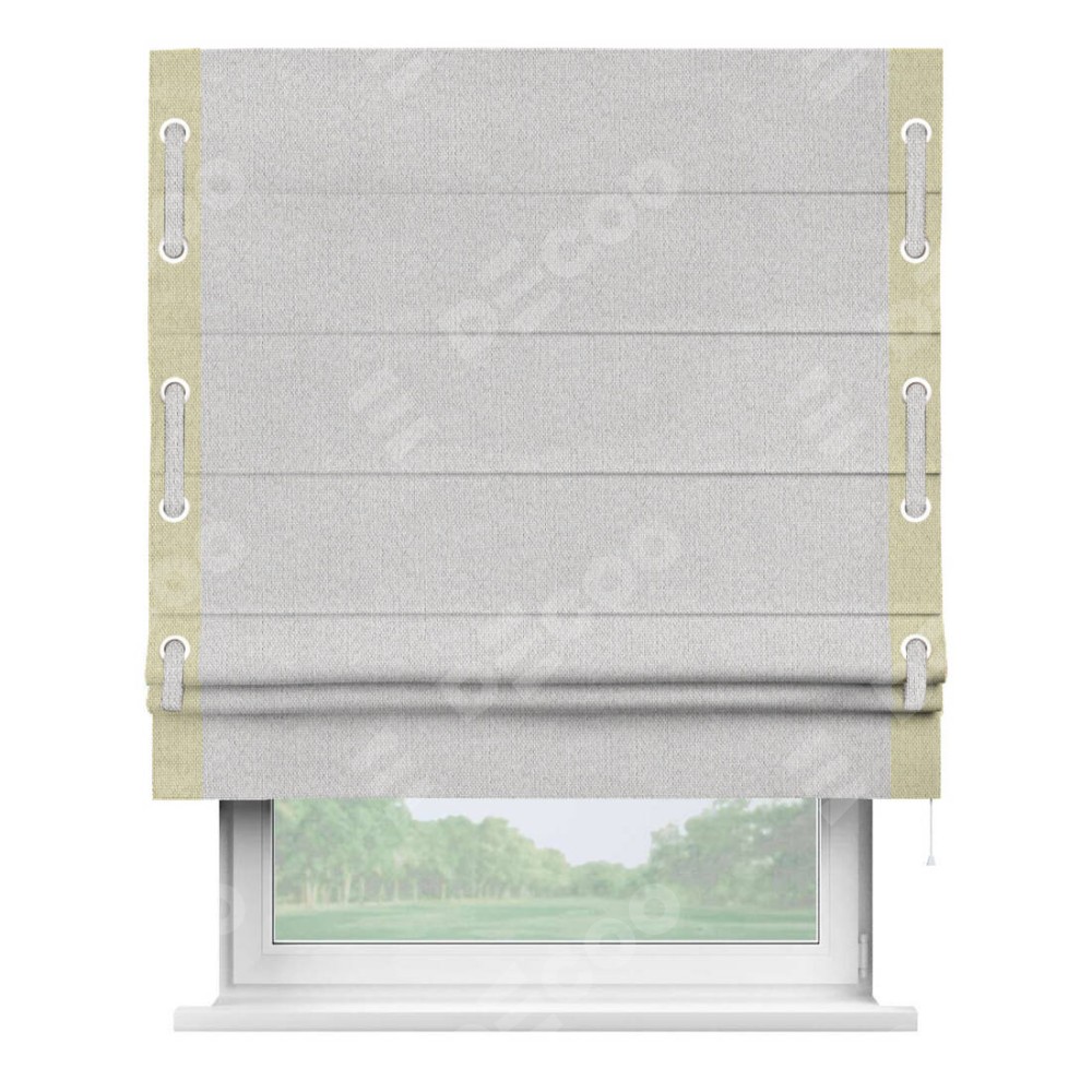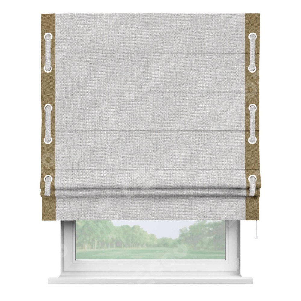 Римская штора «Кортин» с кантом Стрим Дуо (люверсы с пояском), для проема, лён димаут светло-бежевый