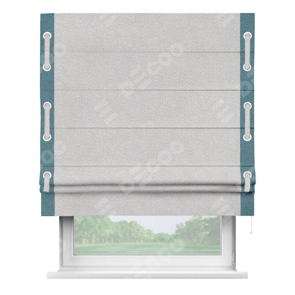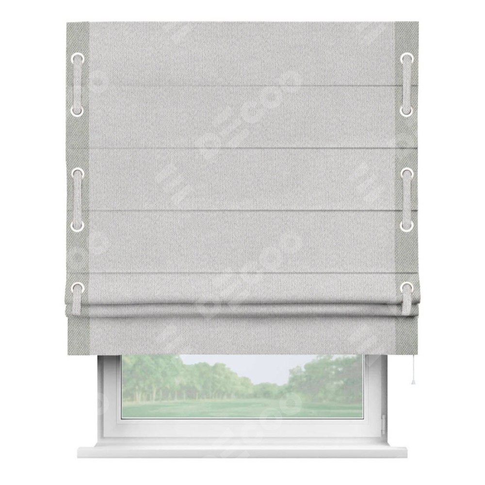 Римская штора «Кортин» с кантом Стрим Дуо (люверсы с пояском) отлично подойдёт для интерьера: в спальню, в кухню и на балкон.