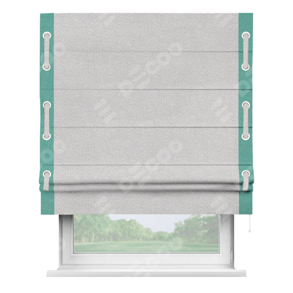 Римская штора «Кортин» с кантом Стрим Дуо (люверсы с пояском) предоставлена в следующих характеристиках: