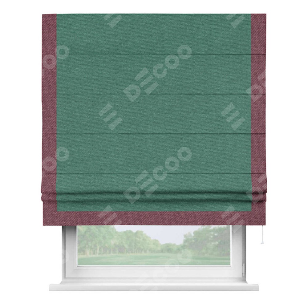 Римская штора производителя «Cortin», используется для проёма, пошита из ткани лён димаут светло-бирюзовый, артикул 91005. Отделка шторы кантом «Виктория», ткань для канта используется из льна димаут разной расцветки на выбор. Имеет универсальный механизм и подходит для монтажа: на потолок, на стену и в нишу.