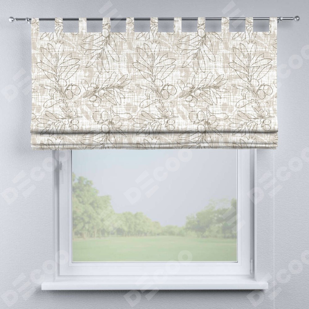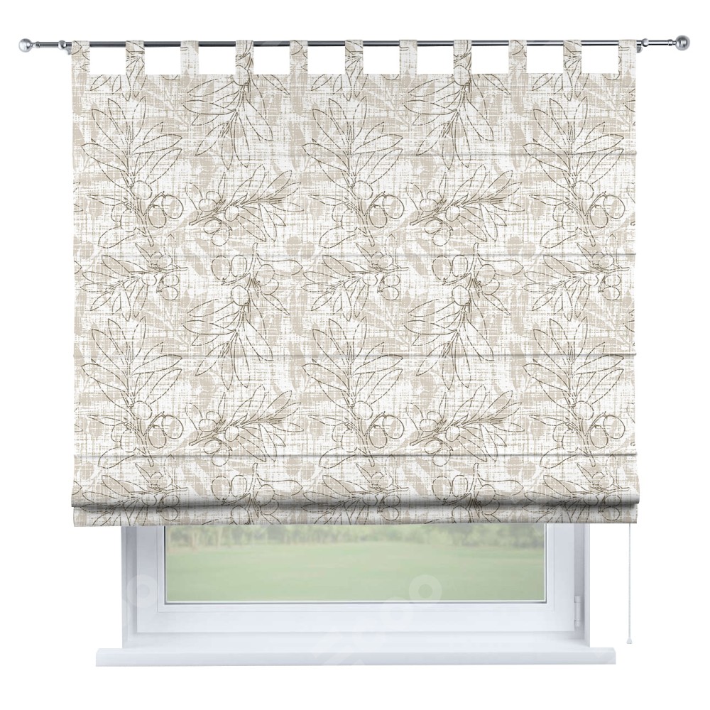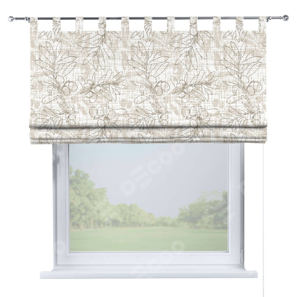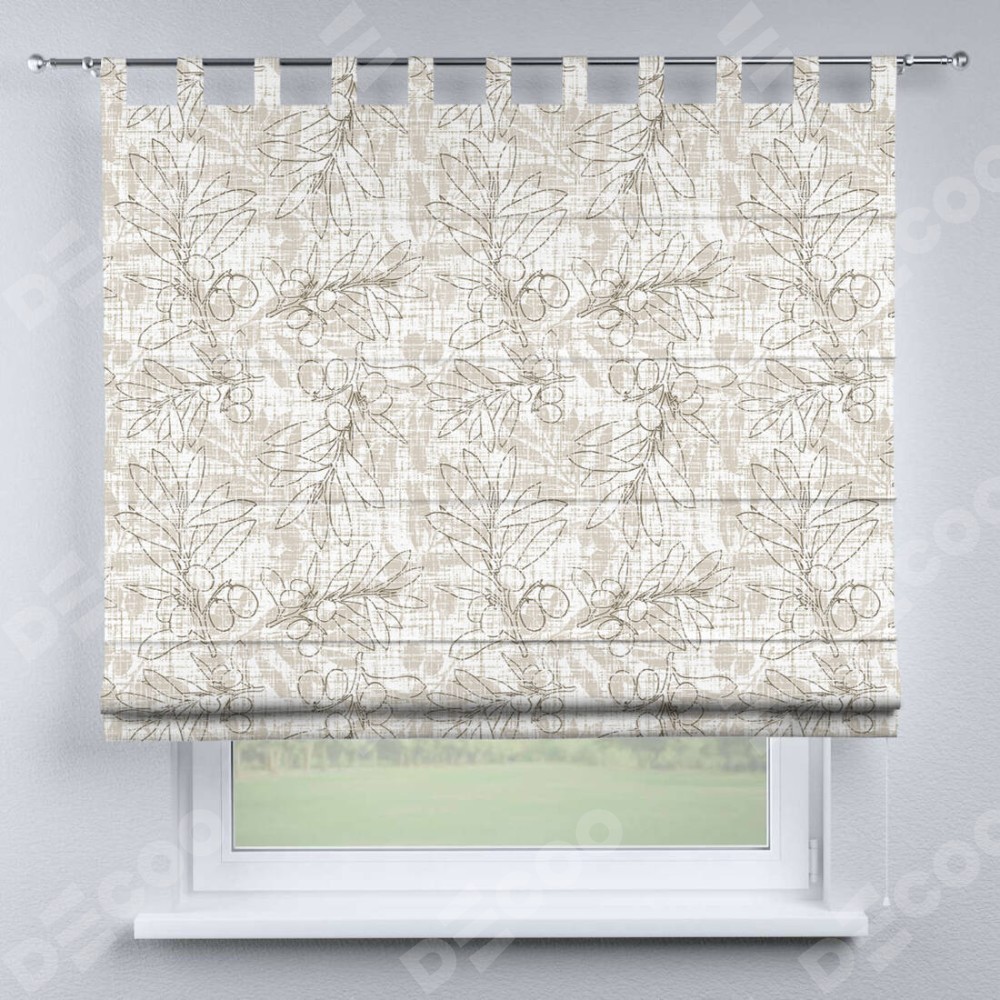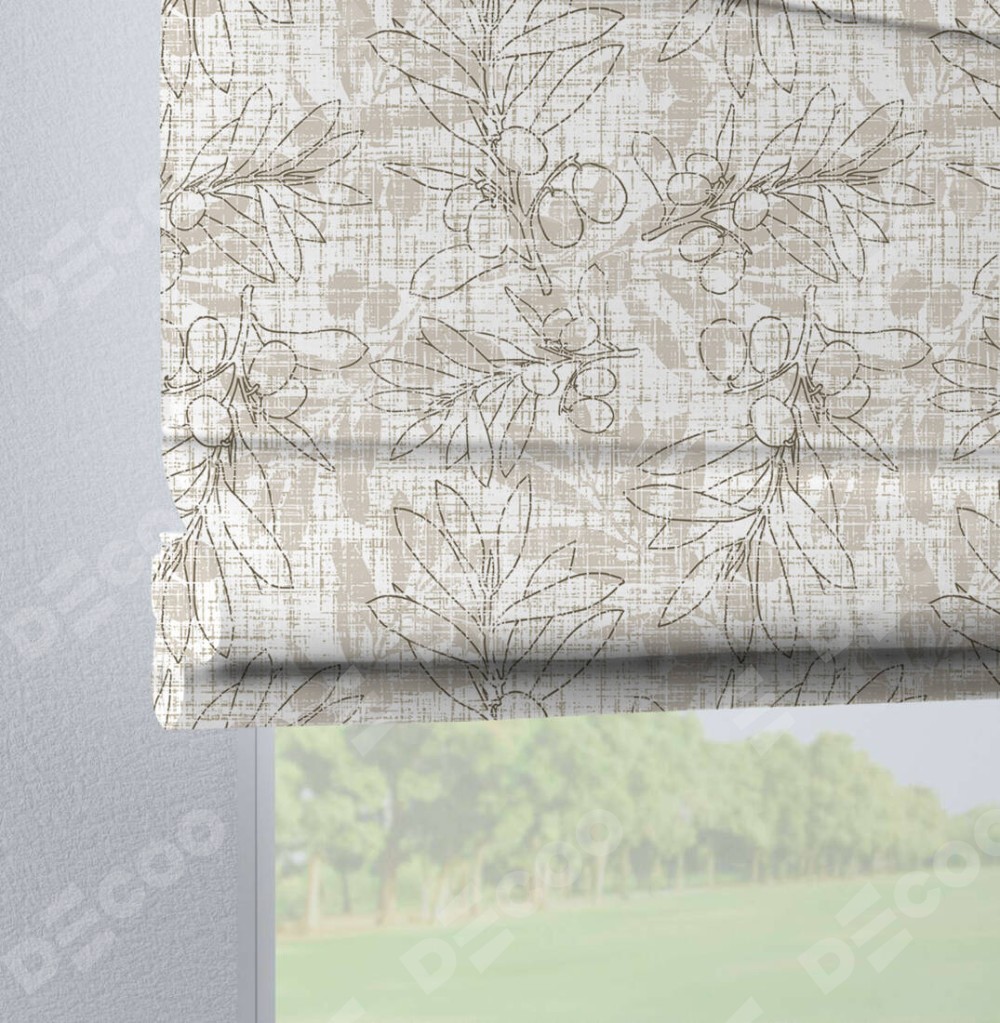 Римская штора производителя «Cortin», используется для проёма, пошита из ткани блэкаут с нанесением сублимационной печати «Ветви оливы». Данная модель пошита на петлях, комплектуется на выбор круглым карнизом и подходит для монтажа на стену. Римская штора на петлях имеет простую систему регулировки высоты, отличительным преимуществом данной модели является простой способ монтажа. Достаточно повесить ее на трубу и штора готова!