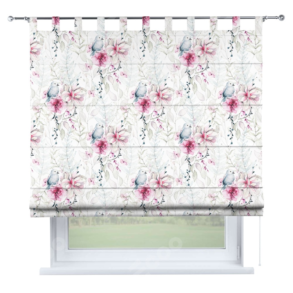 Римская штора производителя «Cortin», используется для проёма, пошита из ткани блэкаут с нанесением сублимационной печати «Мелодия цветов». Данная модель пошита на петлях, комплектуется на выбор круглым карнизом и подходит для монтажа на стену. Римская штора на петлях имеет простую систему регулировки высоты, отличительным преимуществом данной модели является простой способ монтажа. Достаточно повесить ее на трубу и штора готова!