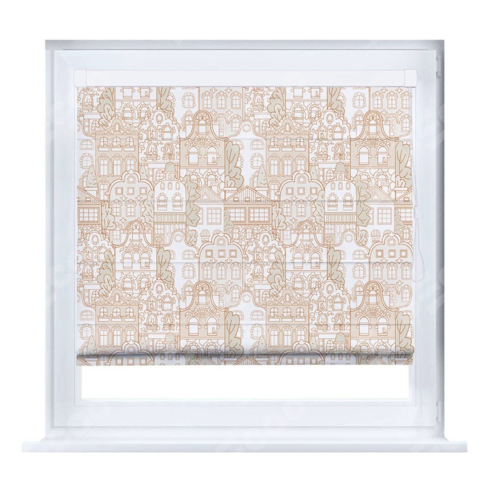 Римская штора производителя «Cortin», устанавливается на створку окна, пошита из ткани блэкаут с нанесением сублимационной печати «Милый городок». Штора шьётся по индивидуальным размерам, для данного типа римской шторы возможная ширина от 35 до 150 см., высота до 250 см.