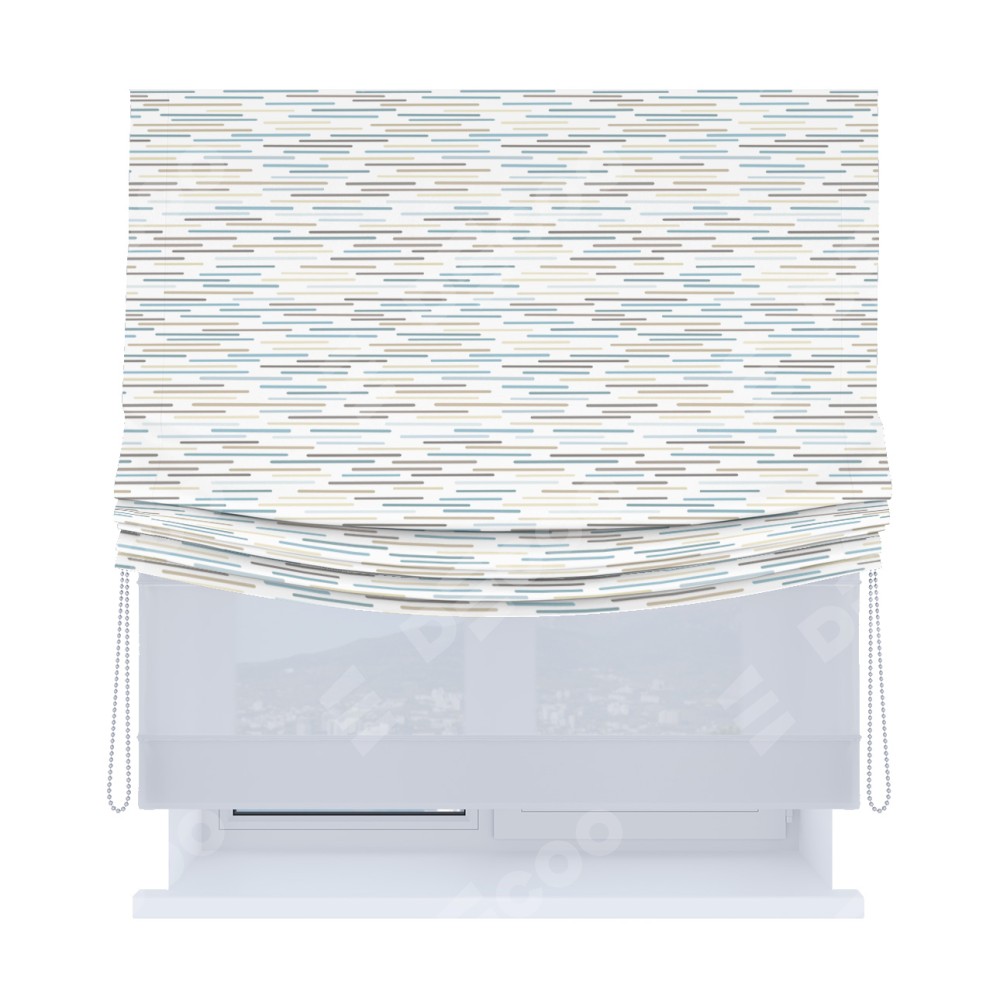 Римская штора день-ночь производителя «Cortin», используется для проёма, пошита из двух полотен, с лицевой блэкаут с нанесением сублимационной печати «Стелс», вторая ткань тюль (по стандарту комплектуется тюль белого цвета артикул V-01). Имеет универсальный механизм и подходит для монтажа: на потолок, на стену и в нишу. Удобное управление каждой шторой отдельно.