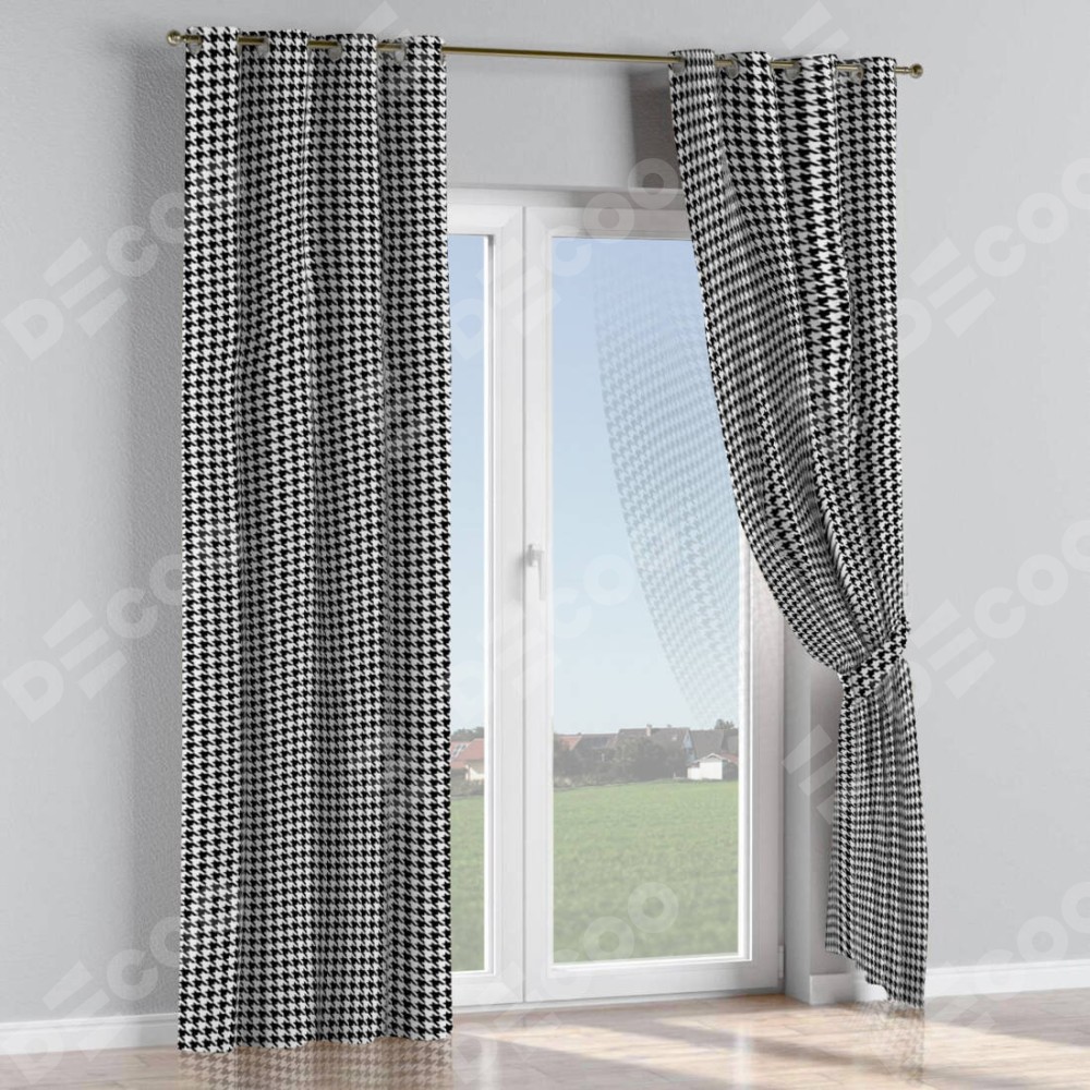 Комплект прямых штор, от производителя «Cortin», пошиты из ткани блэкаут с нанесением сублимационной печати «Гусиные лапки» черно-белый». Данная модель пошита на люверсах, комплектуется на выбор круглым карнизом и подходит для монтажа на стену или потолок. Прямые шторы на люверсах шьются по стандарту с коэффициентом 1/2 (на 100 см. ширины проёма 200 см. ширины ткани), отличительным преимуществом данной модели является простой способ монтажа. Достаточно повесить ее на трубу и штора готова!