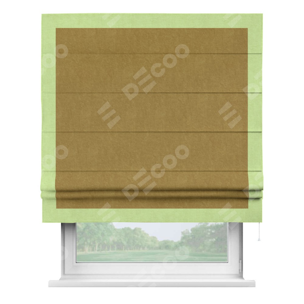 Римская штора «Кортин» для проема, канвас горчица, с кантом Чесс