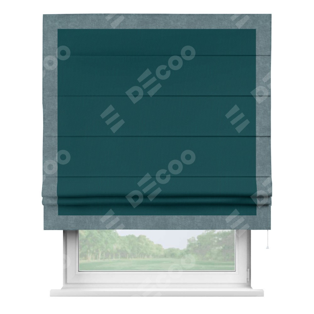 Римская штора «Кортин» для проема, канвас изумрудный, с кантом Чесс