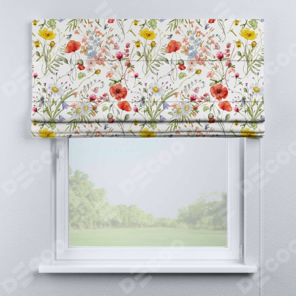 Римская штора «Кортин» для проема «Полевые маки» отлично подойдёт для интерьера: на балкон, в гостиную и в кухню.