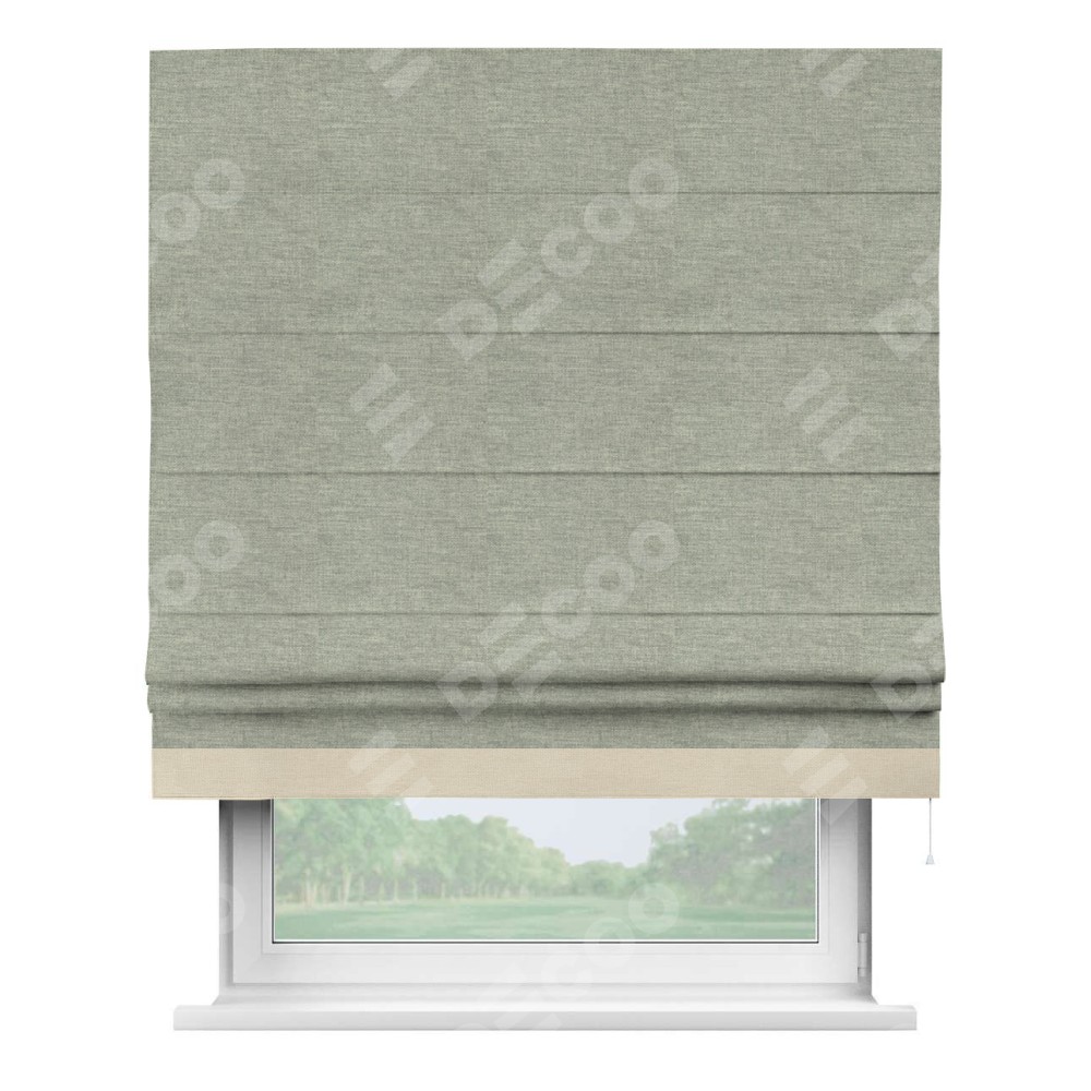 Римская штора производителя «Cortin», используется для проёма, пошита из ткани лён кашемир серый new, артикул 21618. Отделка шторы кантом «Джестер», ткань для канта используется из льна разной расцветки на выбор. Имеет универсальный механизм и подходит для монтажа: на потолок, на стену и в нишу.