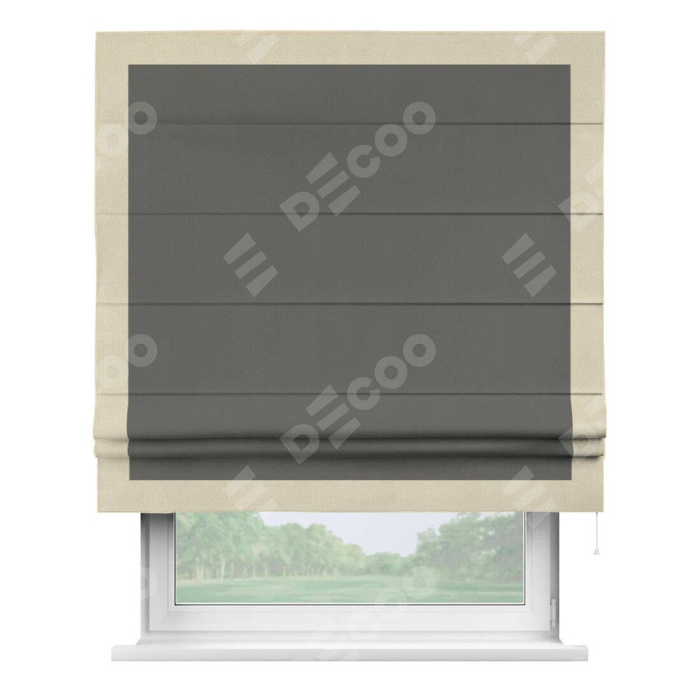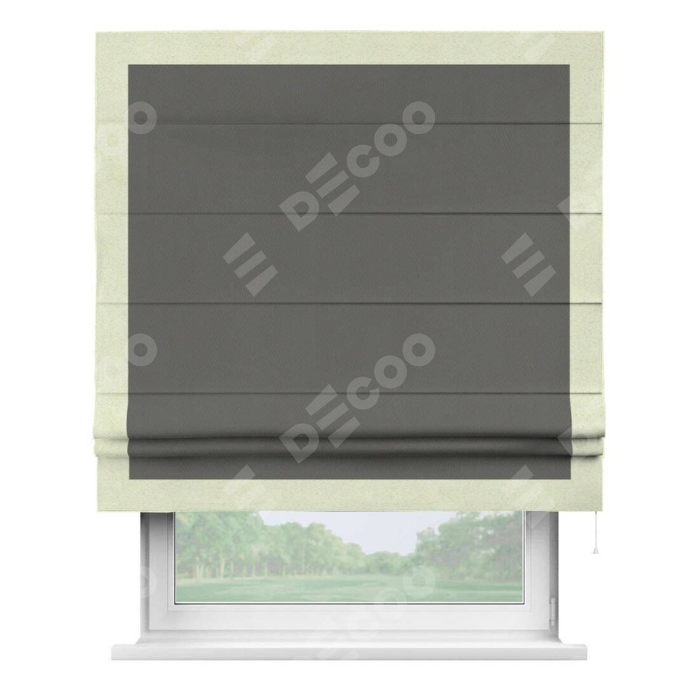 Римская штора «Кортин» для проема, блэкаут однотонный тёмно-серый с кантом Чесс