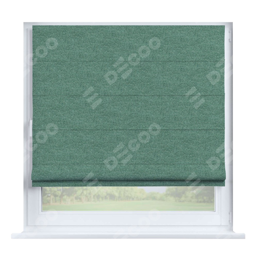 Римская штора производителя «Cortin», устанавливается на створку окна, пошита из ткани твид блэкаут бирюзовый, артикул 90934. Штора шьётся по индивидуальным размерам, для данного типа римской шторы возможная ширина от 35 до 150 см., высота до 250 см.