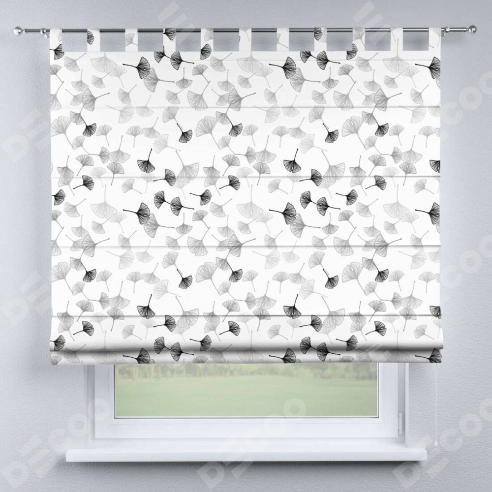 Римская штора производителя «Cortin», используется для проёма, пошита из ткани блэкаут с нанесением сублимационной печати «Дымчатые листочки». Данная модель пошита на петлях, комплектуется на выбор круглым карнизом и подходит для монтажа на стену. Римская штора на петлях имеет простую систему регулировки высоты, отличительным преимуществом данной модели является простой способ монтажа. Достаточно повесить ее на трубу и штора готова!