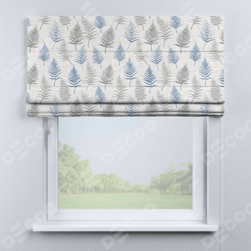 Классическая римская штора производителя «Cortin», пошита из ткани блэкаут с нанесением сублимационной печати «Королевский папоротник». Имеет универсальный механизм и подходит для монтажа: на потолок, на стену и в нишу.
