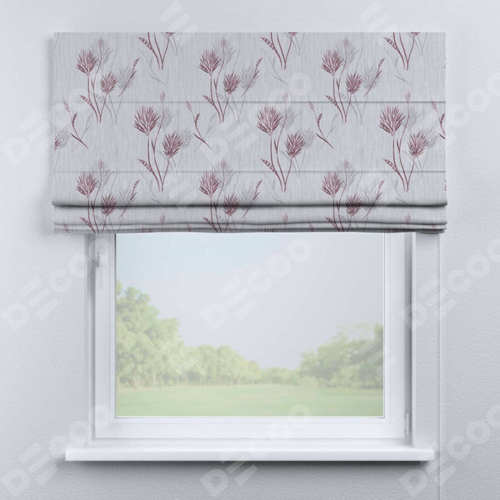 Римская штора «Кортин» для проема «Полевые травы серый» предоставлена в следующих характеристиках: