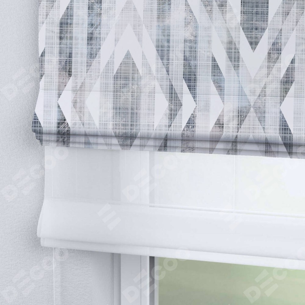 Двойная римская штора «День-ночь» от производителя Cortin предназначена для использования в проёмах. Эта штора уникальна тем, что состоит из двух полотен. На лицевой стороне находится блэкаут с нанесением сублимационной печати «Триумф», обеспечивающий эффективное затемнение. В комплект также входит вторая ткань — легкий белый тюль (артикул: V-01), который добавляет изящества и легкости оформлению окна. Кроме того, доступны и другие разновидности ткани тюль, выбор которых доступен по ссылке .