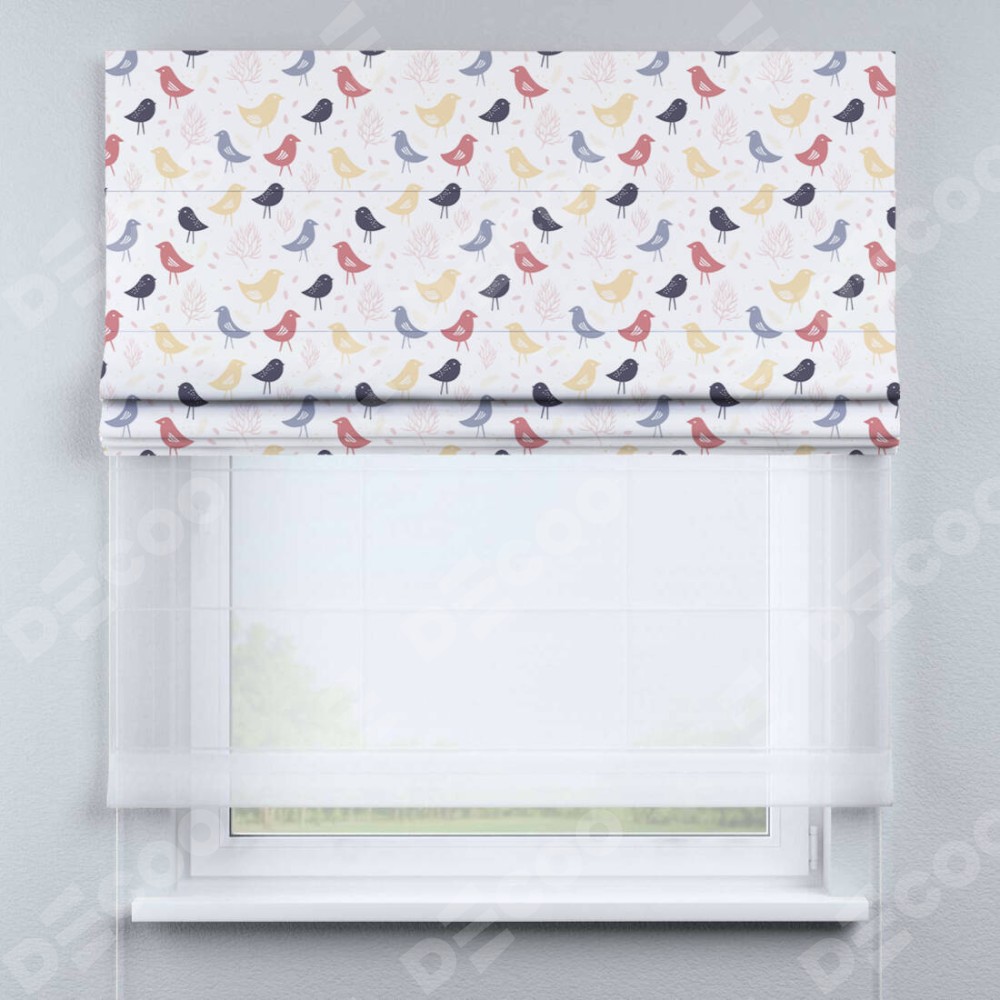 Римская штора «Кортин» день-ночь «Цветные птички»