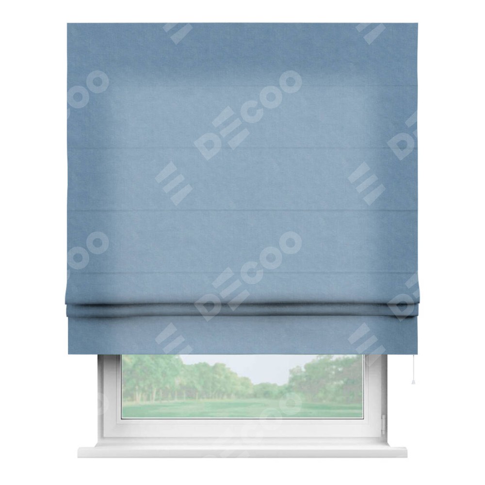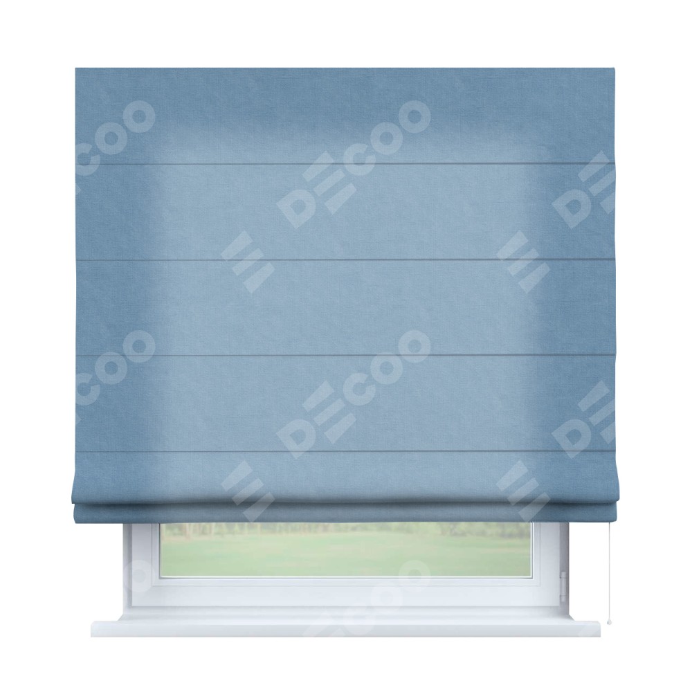 Классическая римская штора производителя «Cortin», пошита из ткани канвас голубой, артикул: 92729. Имеет универсальный механизм и подходит для монтажа: на потолок, на стену и в нишу.