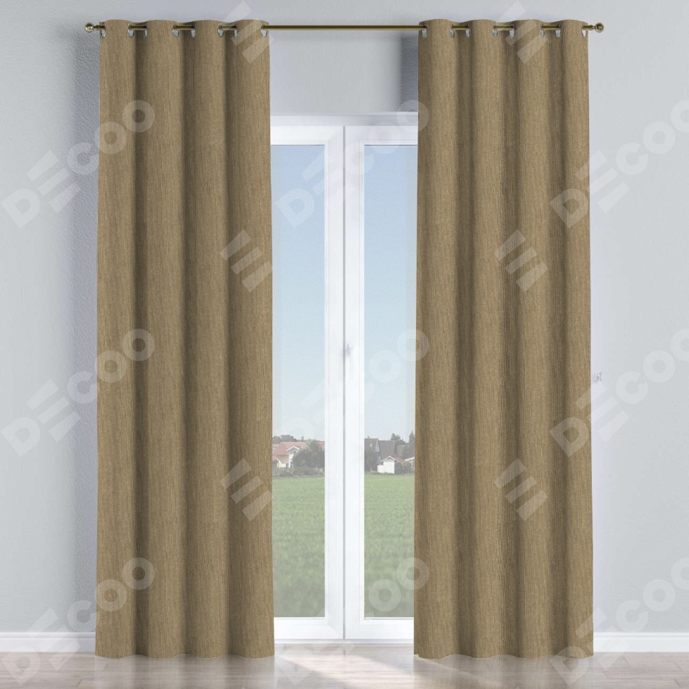 Комплект прямых штор, от производителя «Cortin», пошиты из ткани лён димаут тёмно-бежевый, артикул ткани 16261. Данная модель пошита на люверсах, комплектуется на выбор круглым карнизом и подходит для монтажа на стену или потолок. Прямые шторы на люверсах шьются по стандарту с коэффициентом 1/2 (на 100 см. ширины проёма 200 см. ширины ткани), отличительным преимуществом данной модели является простой способ монтажа. Достаточно повесить ее на трубу и штора готова!