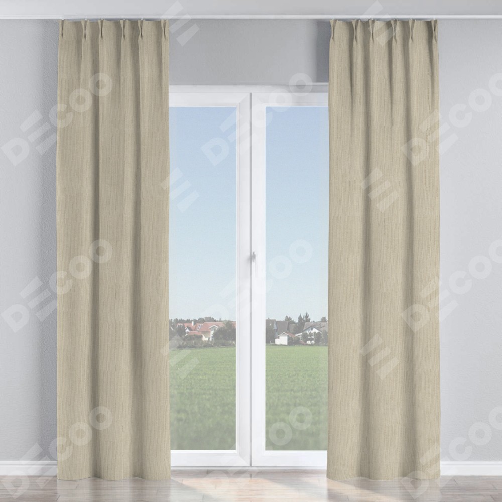 Комплект прямых штор, от производителя «Cortin», пошиты из ткани cotton блэкаут светло-бежевый, артикул ткани 71119. С изнаночной стороны в верхней части штор пристрачивается шторная лента с декоративными складками «Кустик». Для создания элегантных складок прямые шторы шьются по стандарту с коэффициентом 1:2 (на 100 см. ширины проёма 200 см. ширины ткани).