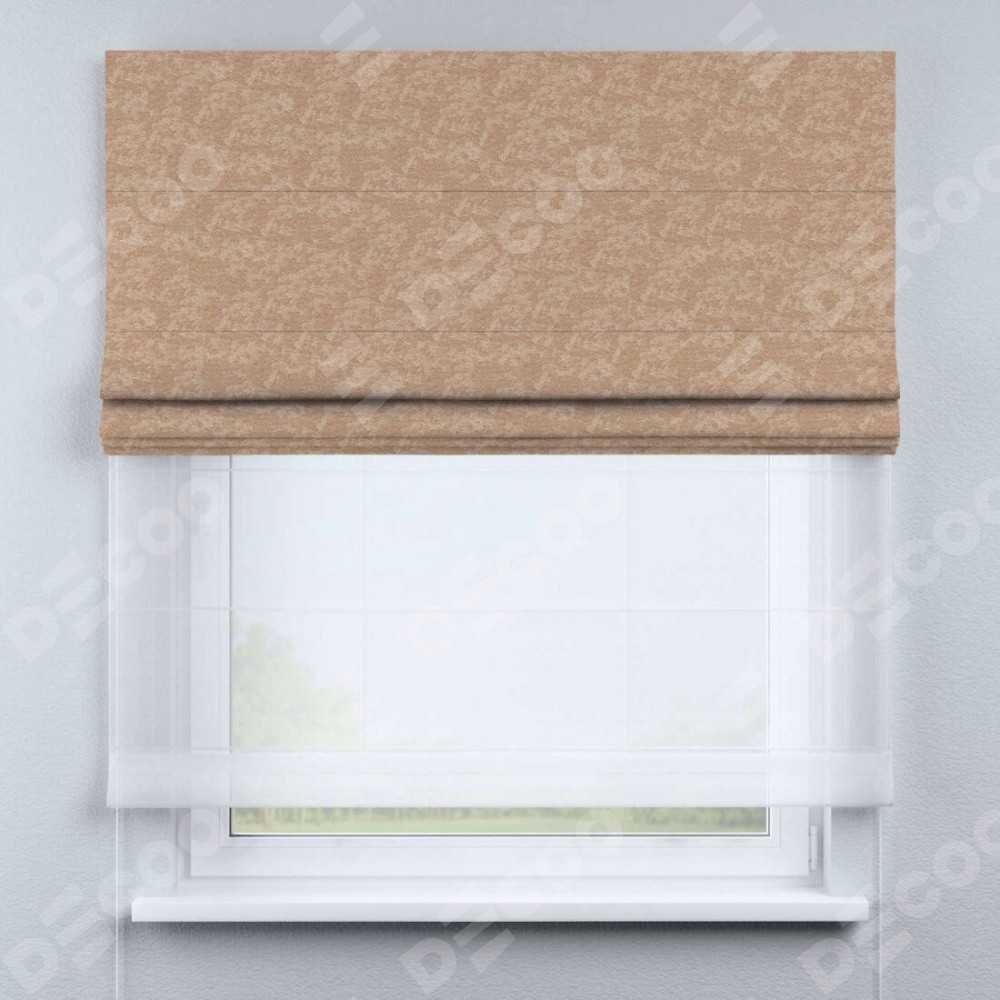 Одно из ключевых преимуществ двойной римской шторы «День-ночь» — это её функциональность. При поднятии основной шторы проём не оголяется благодаря наличию второй ткани из тюля. Это создает дополнительный уровень уюта и комфорта в помещении. Кроме того, доступен выбор из различных видов тканей тюля, позволяющий настроить штору в соответствии с индивидуальными предпочтениями.